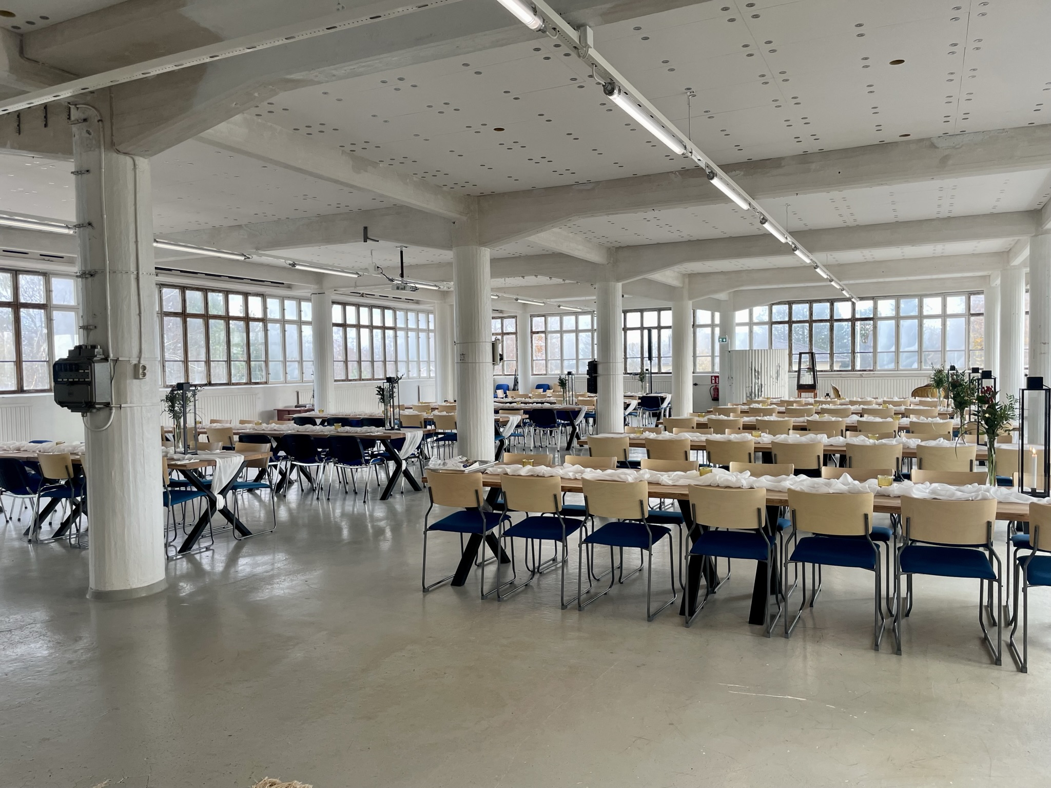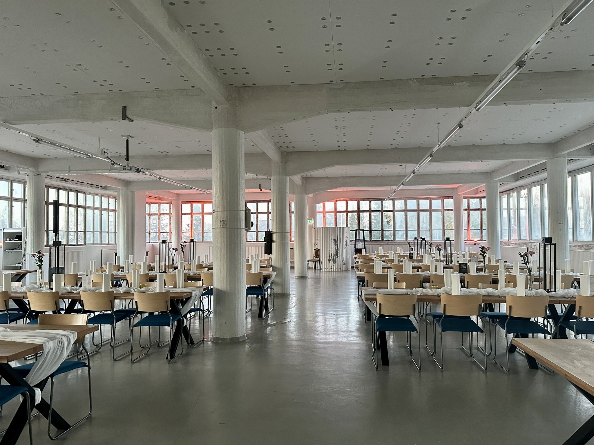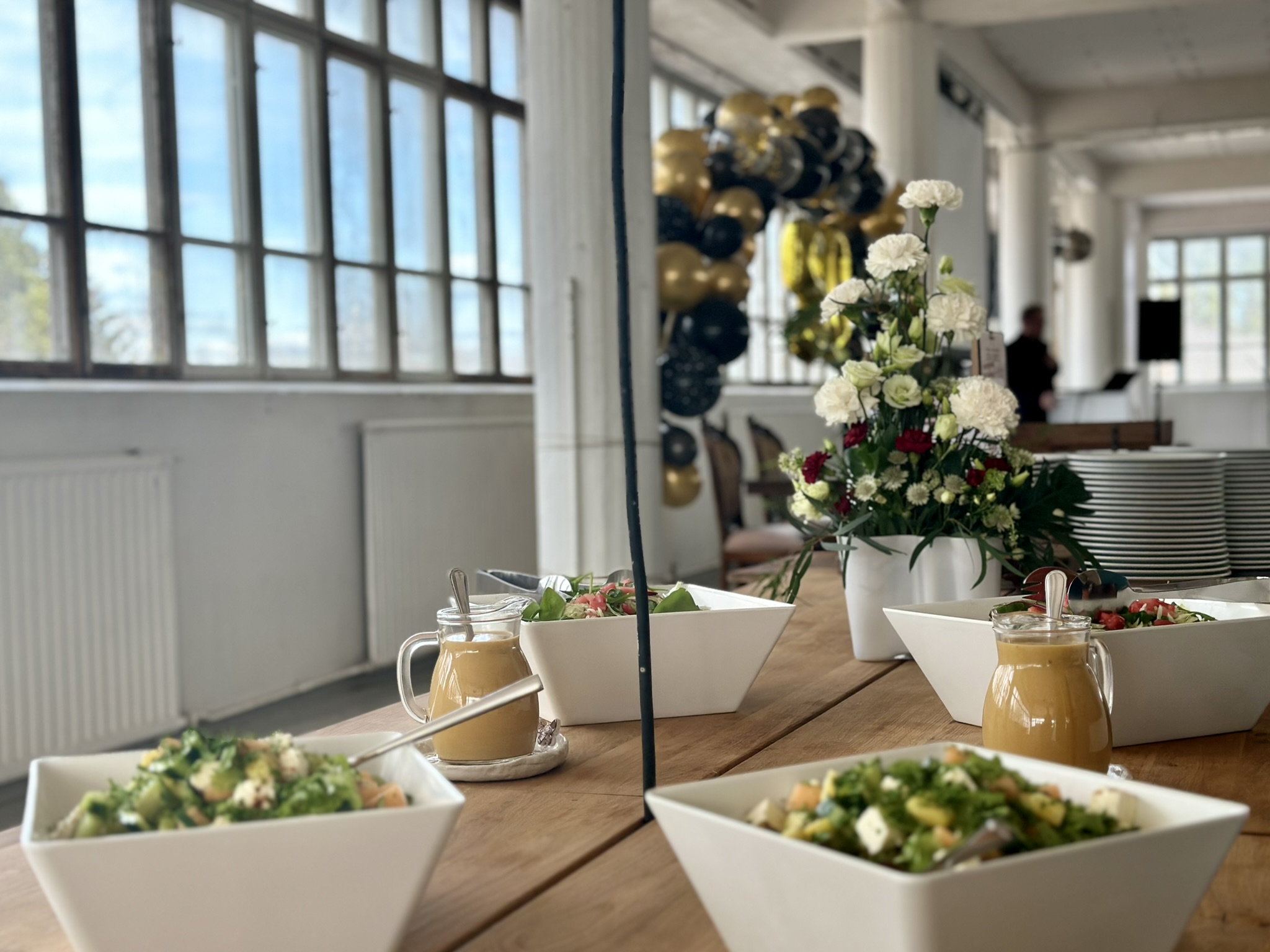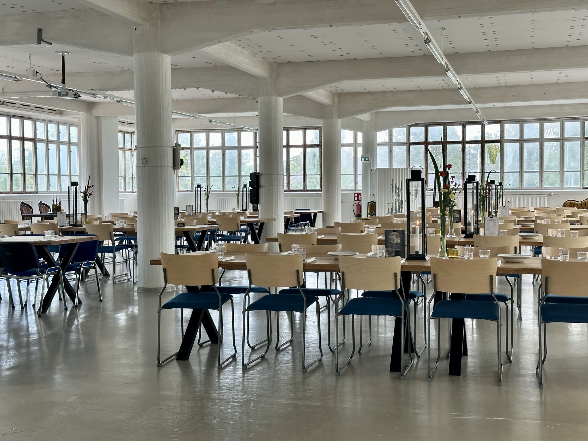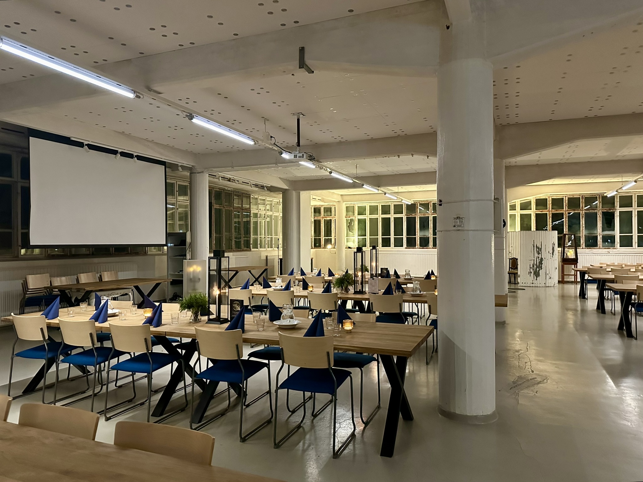 Salissa voi juhlia kerralla 180 henkeä, mutta mikään ei estä järjestämästä henkilömäärältään isojakin juhlia niin että juhlijat saapuvat taloon 2-3 erässä. Toisaalta valoa ja avaruutta tuovan ikkunarivistön ansiosta miljöössä viihtyy hyvin pienetkin, esim. 20 hengen seurueet. Yhtenäisen tilan (ei väliseiniä) ansiosta suurikin juhlaseurue on samassa tilassa. Tässä autenttisessa tehdasmiljöössä järjestät niin kokoukset, häät, muistotilaisuudet, pikkujoulut, syntymäpäivät tai mitkä vaan pienet taikka suuret tilaisuudet.