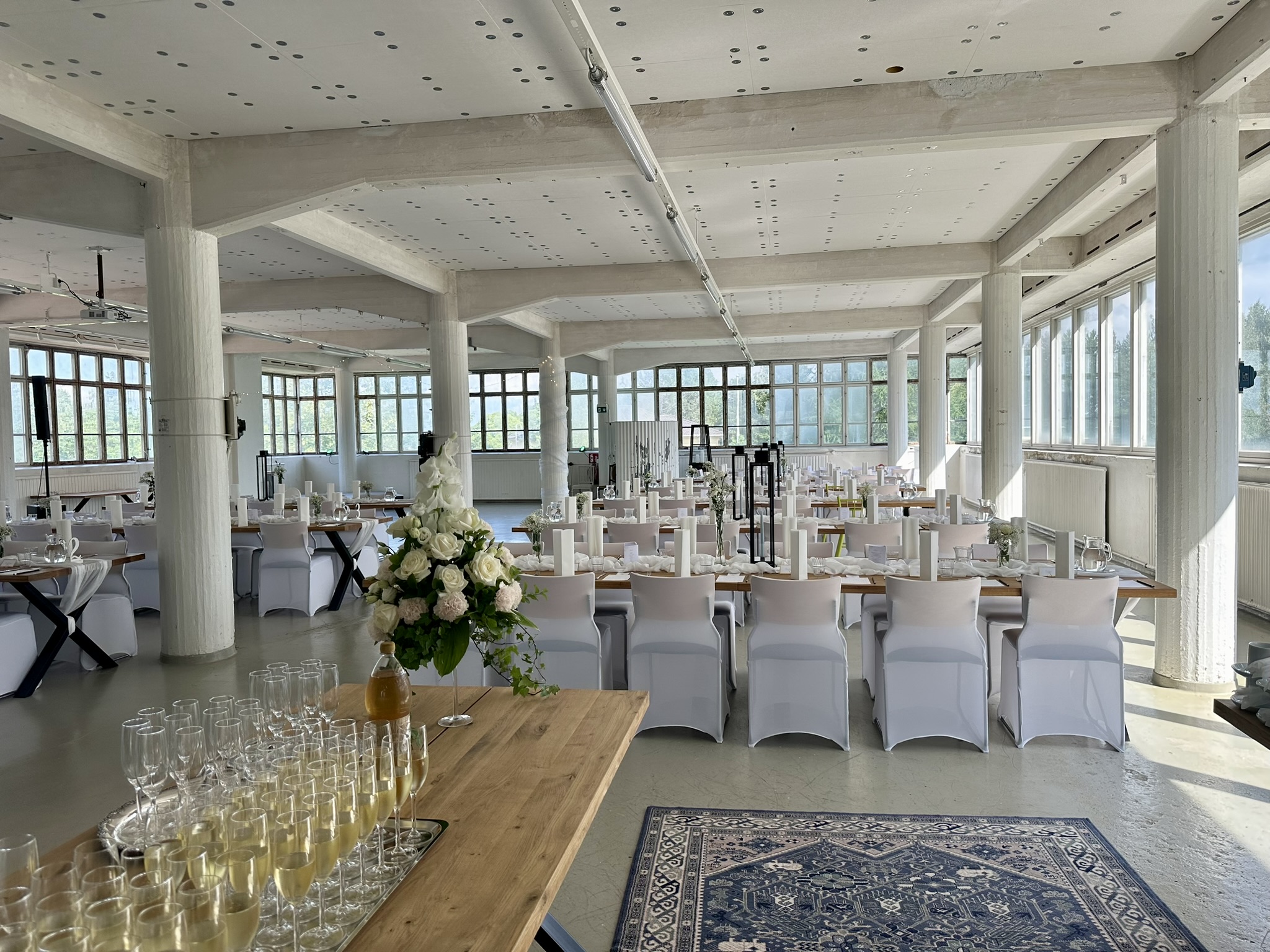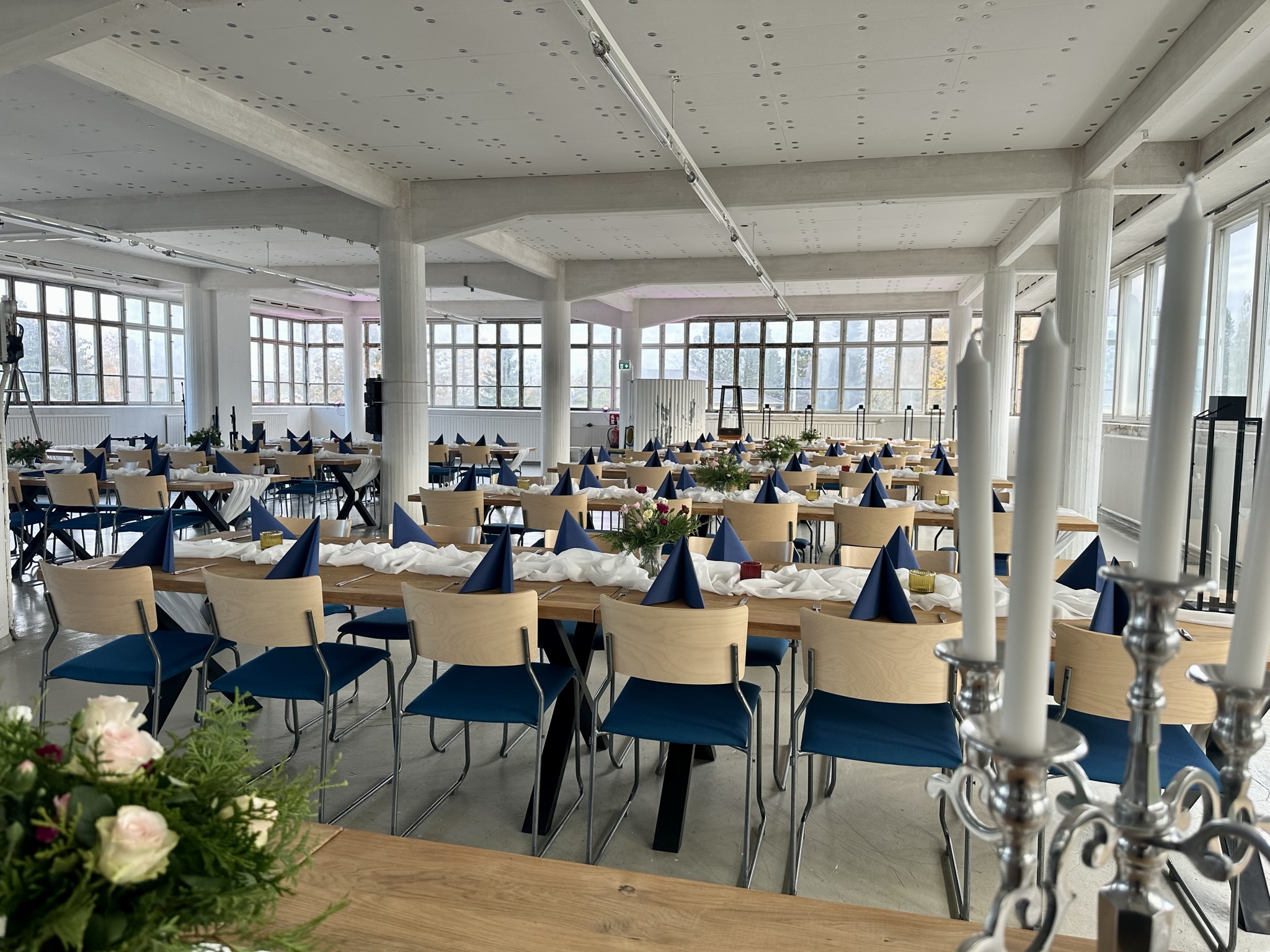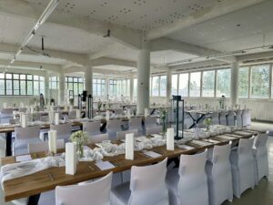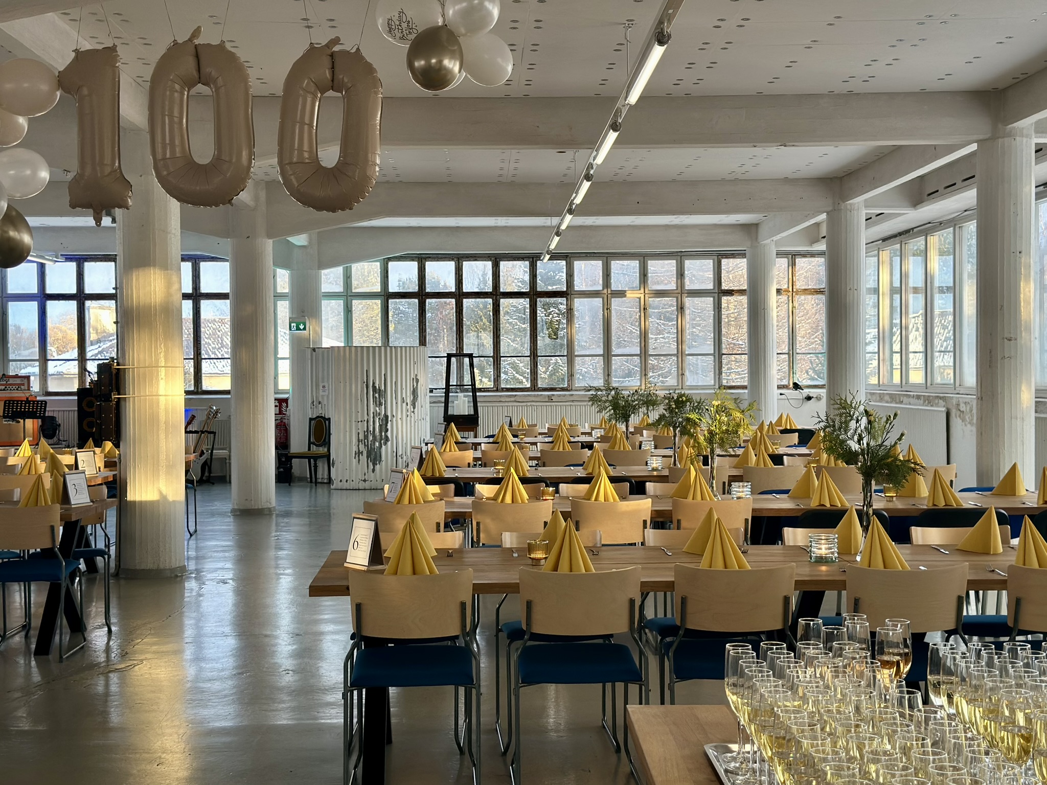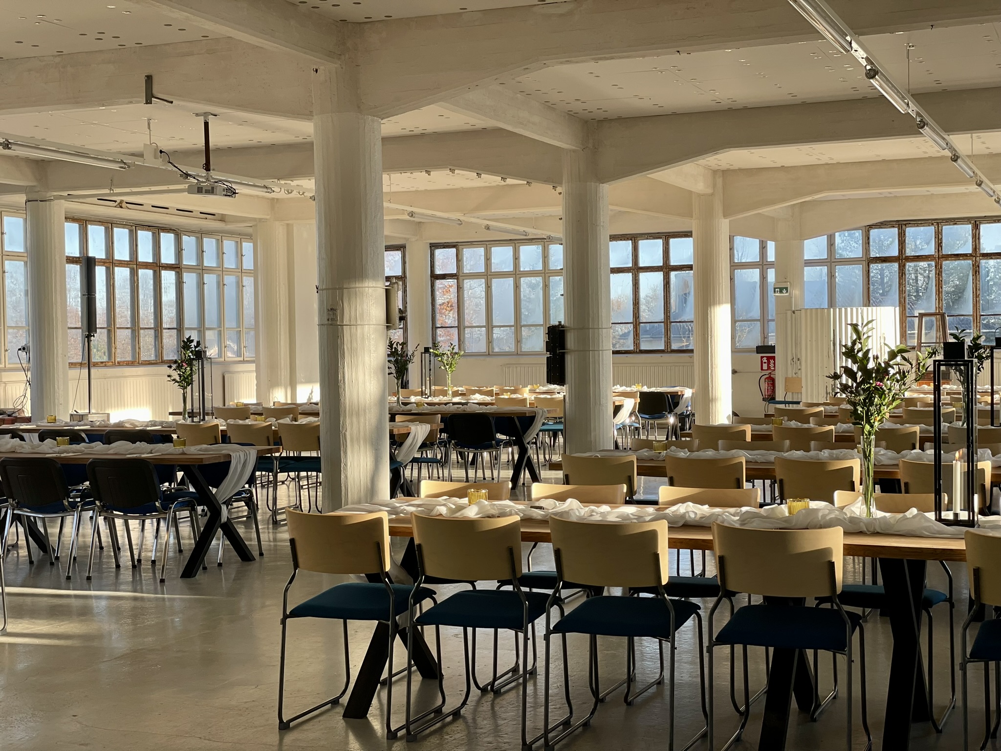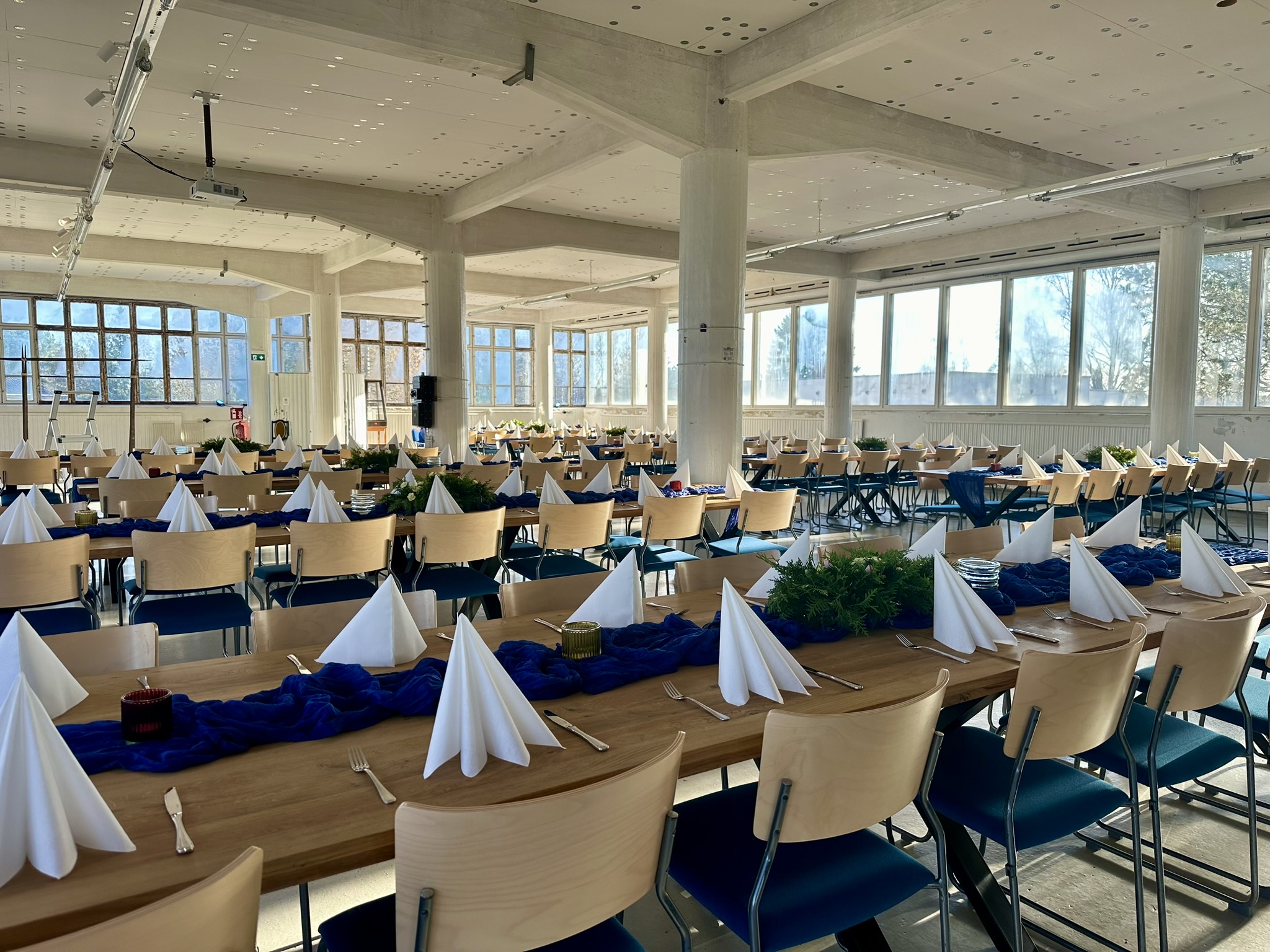 Salissa voi juhlia kerralla 180 henkeä, mutta mikään ei estä järjestämästä henkilömäärältään isojakin juhlia niin että juhlijat saapuvat taloon 2-3 erässä. Toisaalta valoa ja avaruutta tuovan ikkunarivistön ansiosta miljöössä viihtyy hyvin pienetkin, esim. 20 hengen seurueet. Yhtenäisen tilan (ei väliseiniä) ansiosta suurikin juhlaseurue on samassa tilassa. Tässä autenttisessa tehdasmiljöössä järjestät niin kokoukset, häät, muistotilaisuudet, pikkujoulut, syntymäpäivät tai mitkä vaan pienet taikka suuret tilaisuudet.