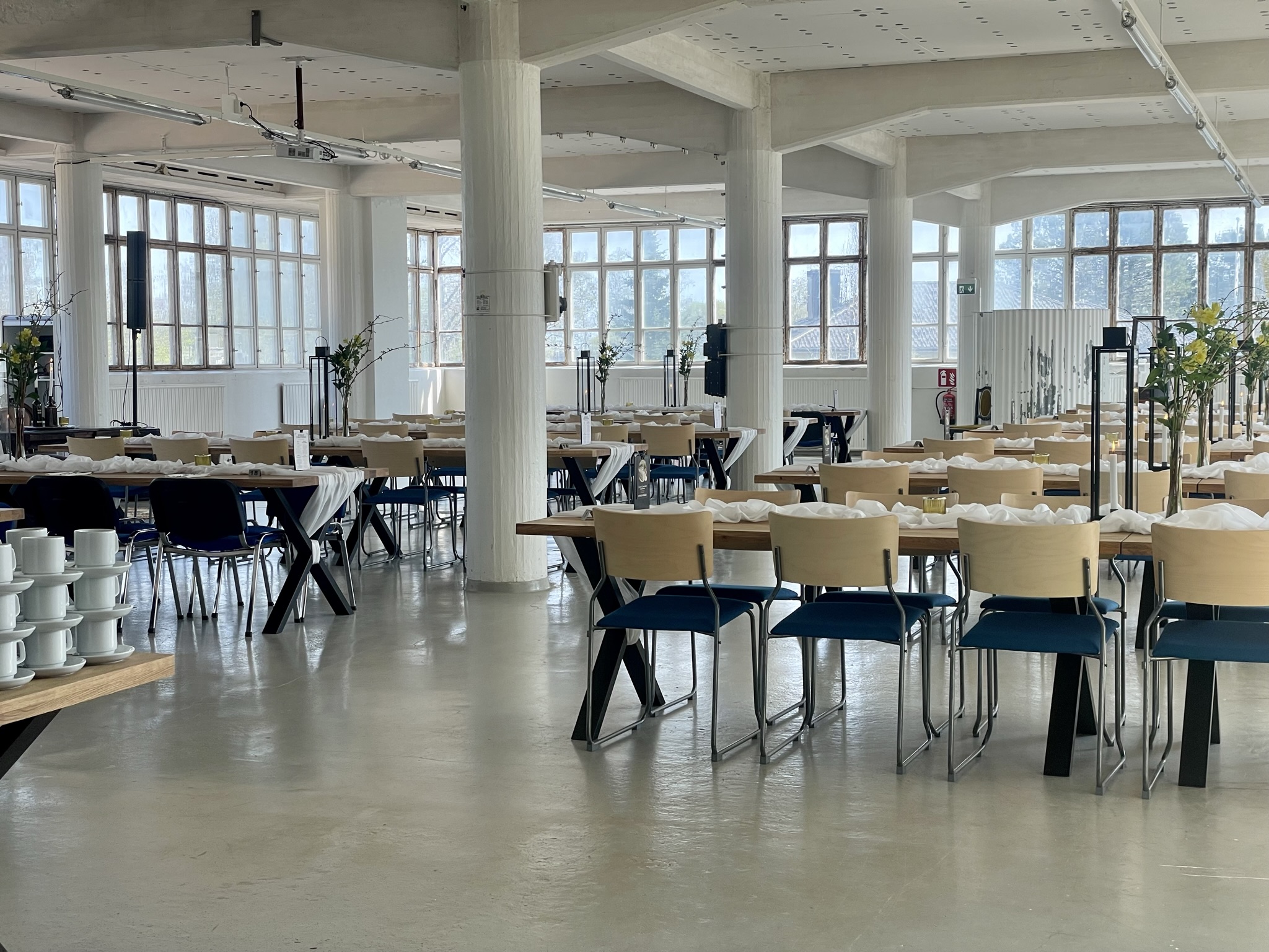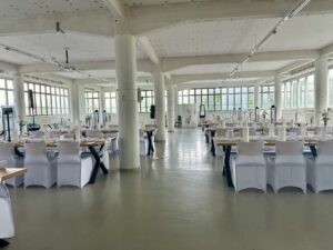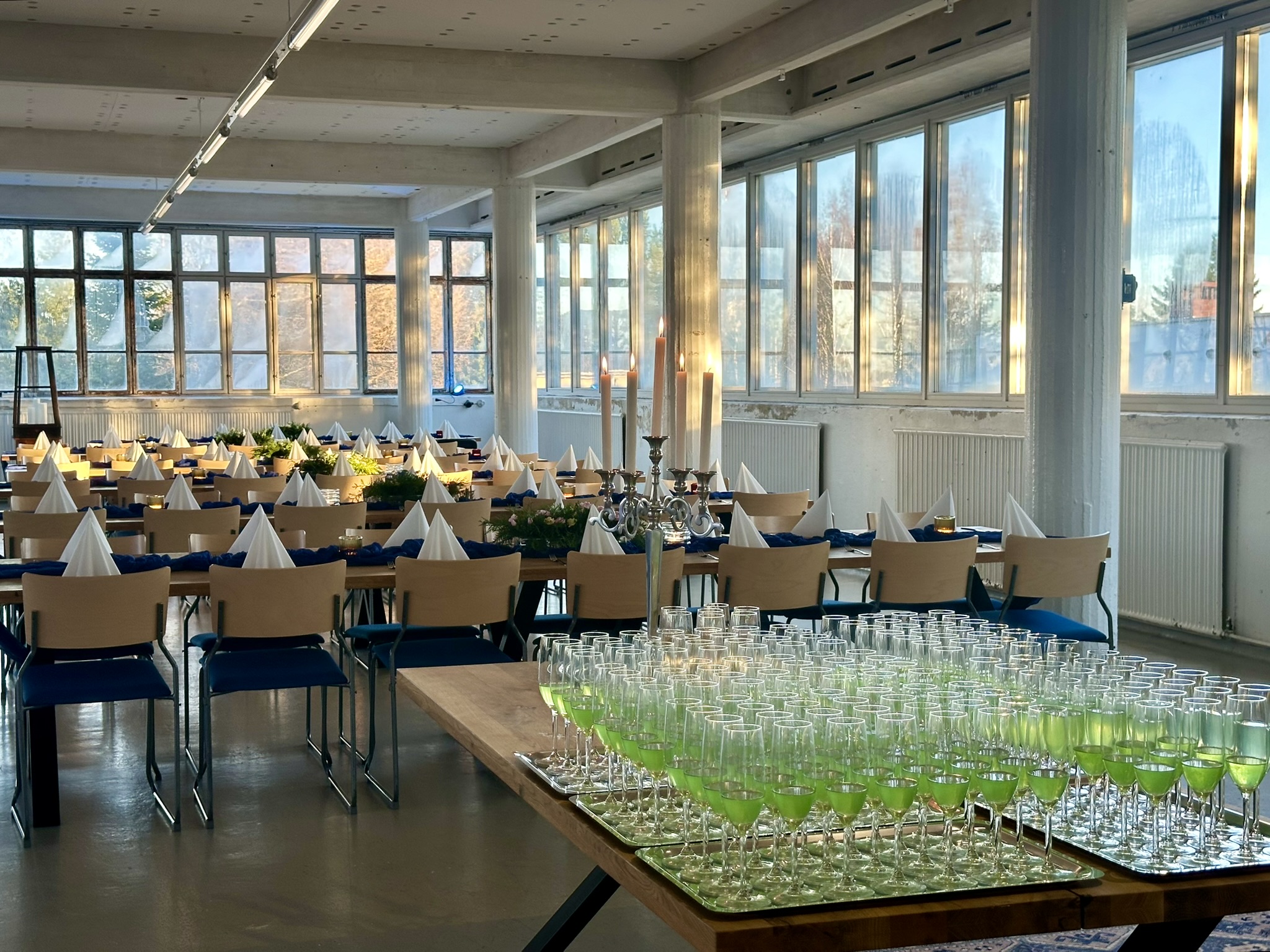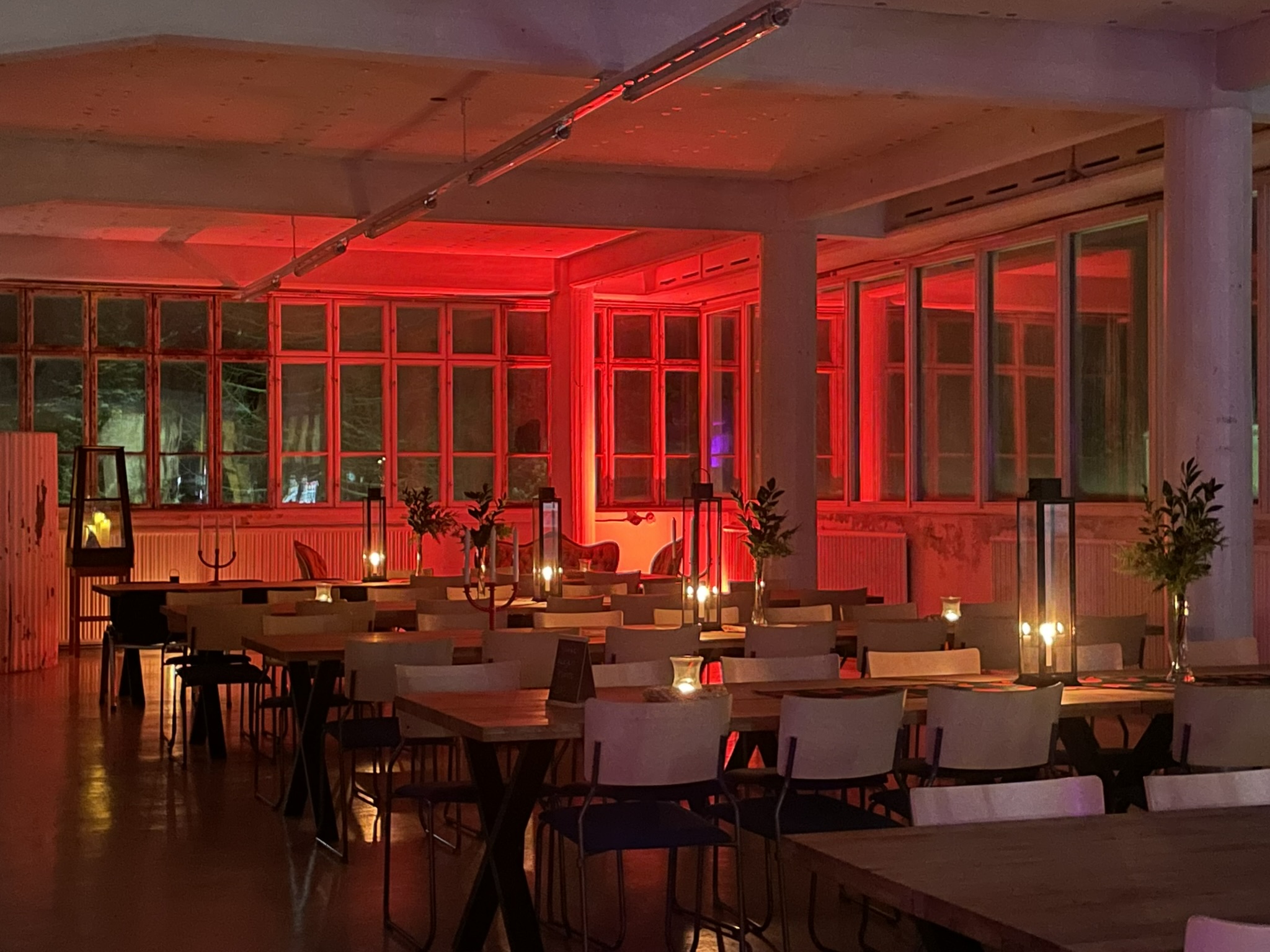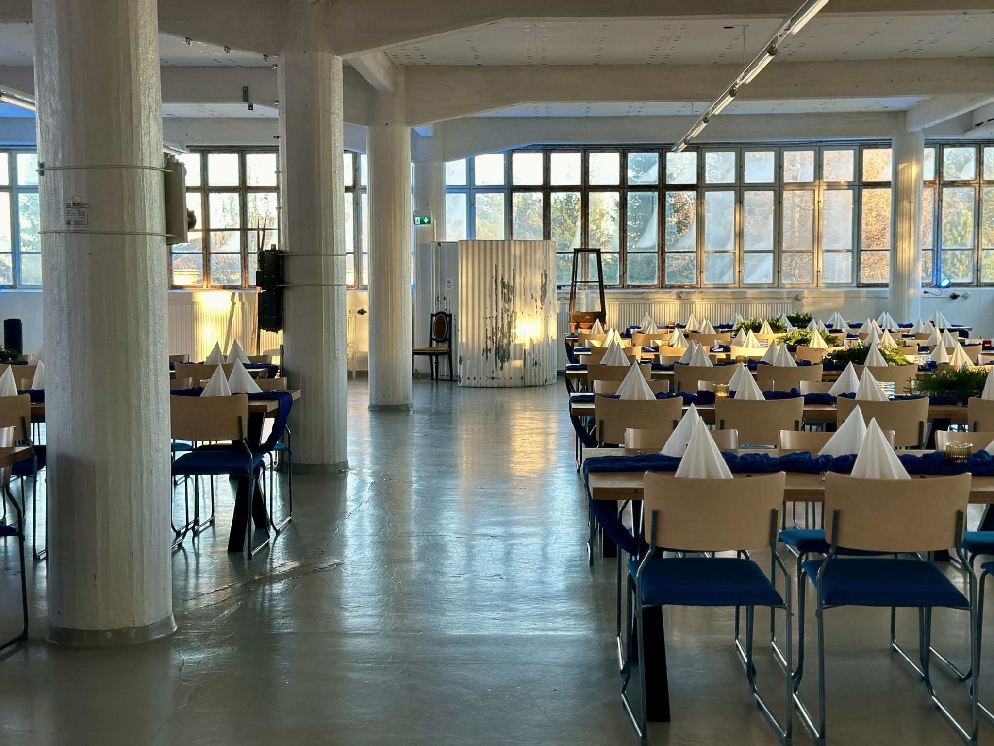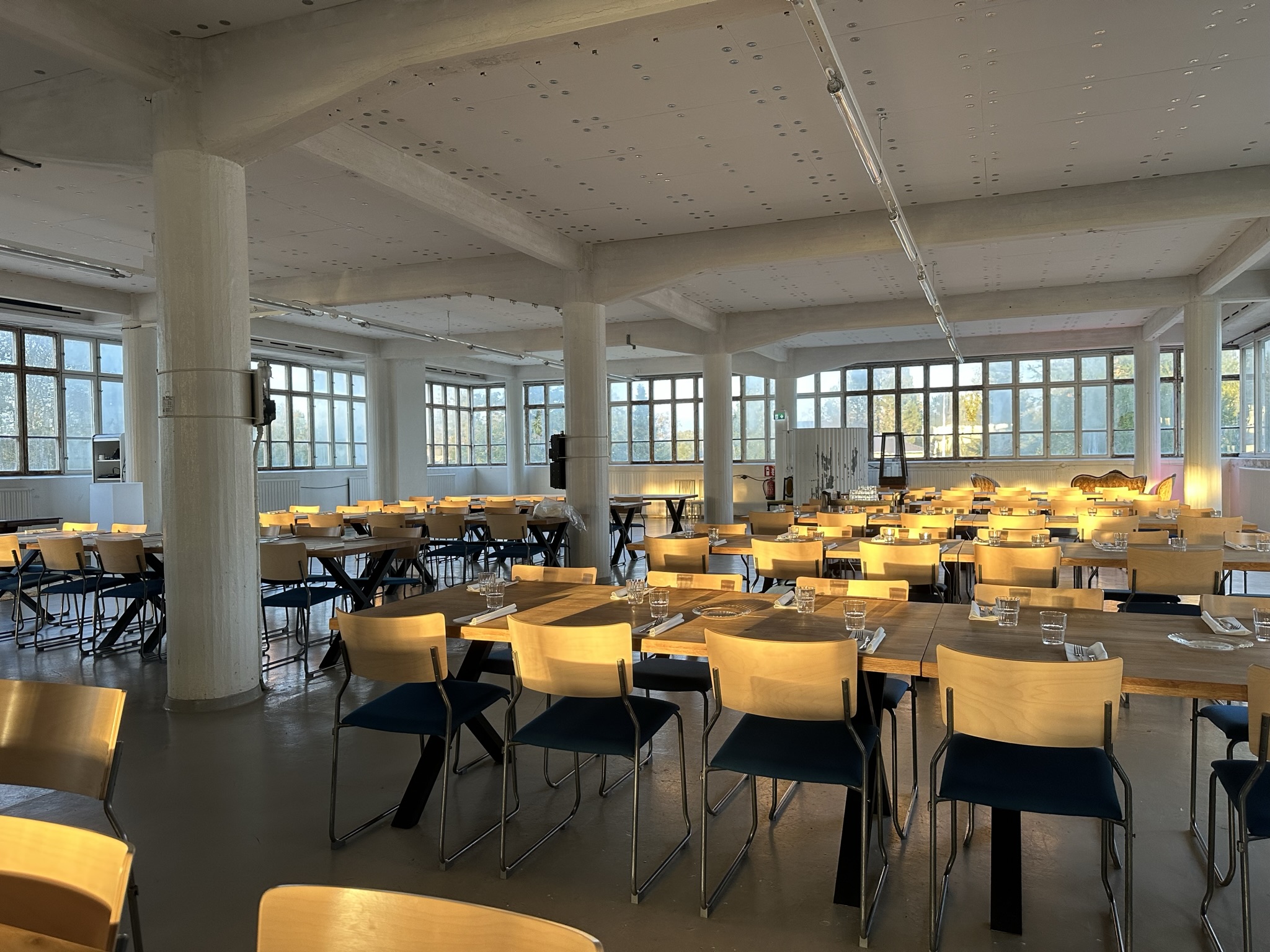 Salissa voi juhlia kerralla 180 henkeä, mutta mikään ei estä järjestämästä henkilömäärältään isojakin juhlia niin että juhlijat saapuvat taloon 2-3 erässä. Toisaalta valoa ja avaruutta tuovan ikkunarivistön ansiosta miljöössä viihtyy hyvin pienetkin, esim. 20 hengen seurueet. Yhtenäisen tilan (ei väliseiniä) ansiosta suurikin juhlaseurue on samassa tilassa. Tässä autenttisessa tehdasmiljöössä järjestät niin kokoukset, häät, muistotilaisuudet, pikkujoulut, syntymäpäivät tai mitkä vaan pienet taikka suuret tilaisuudet.