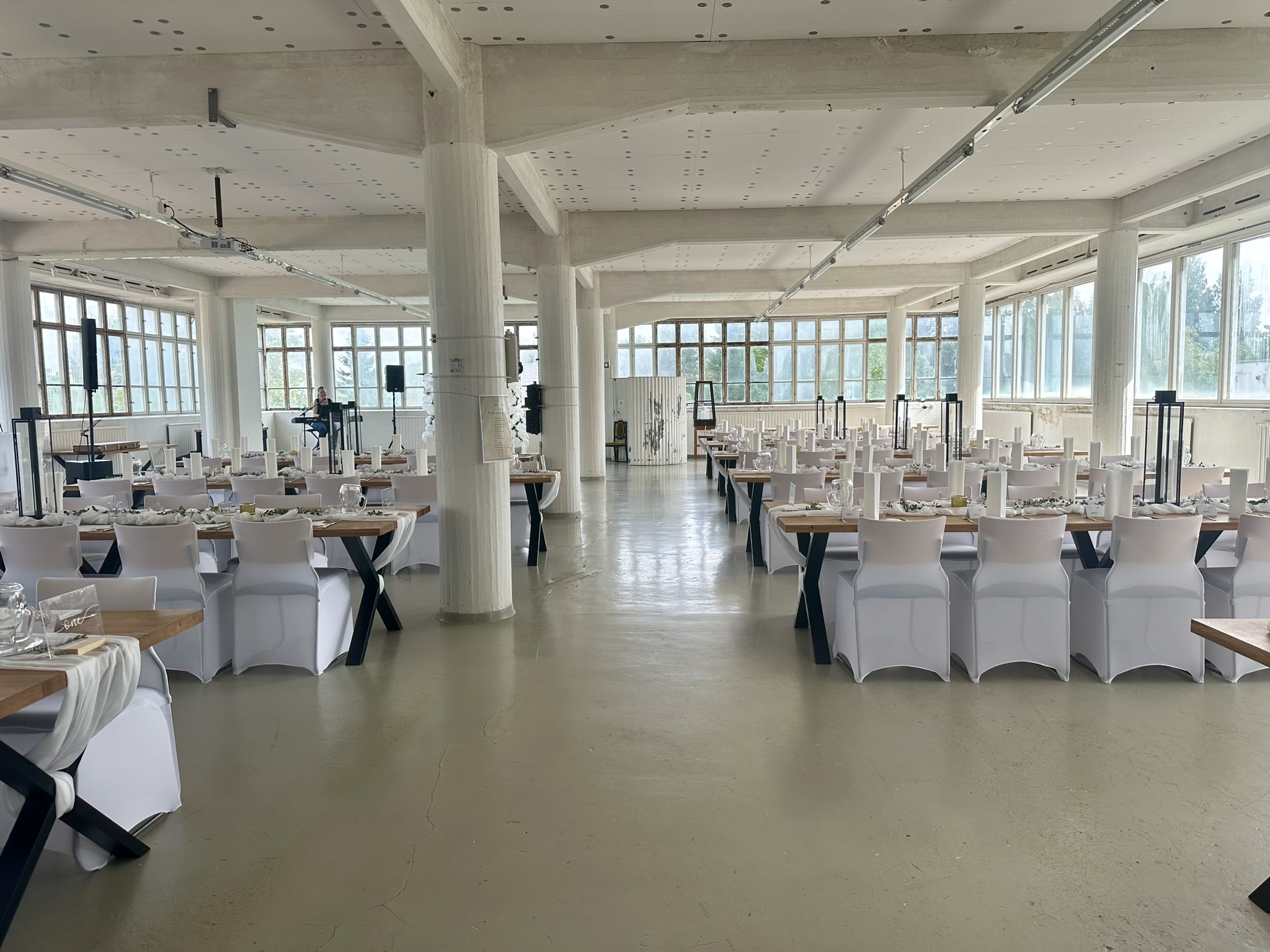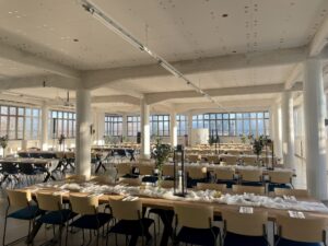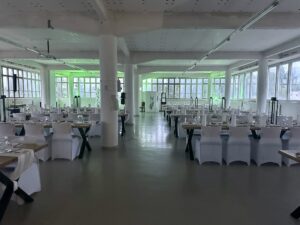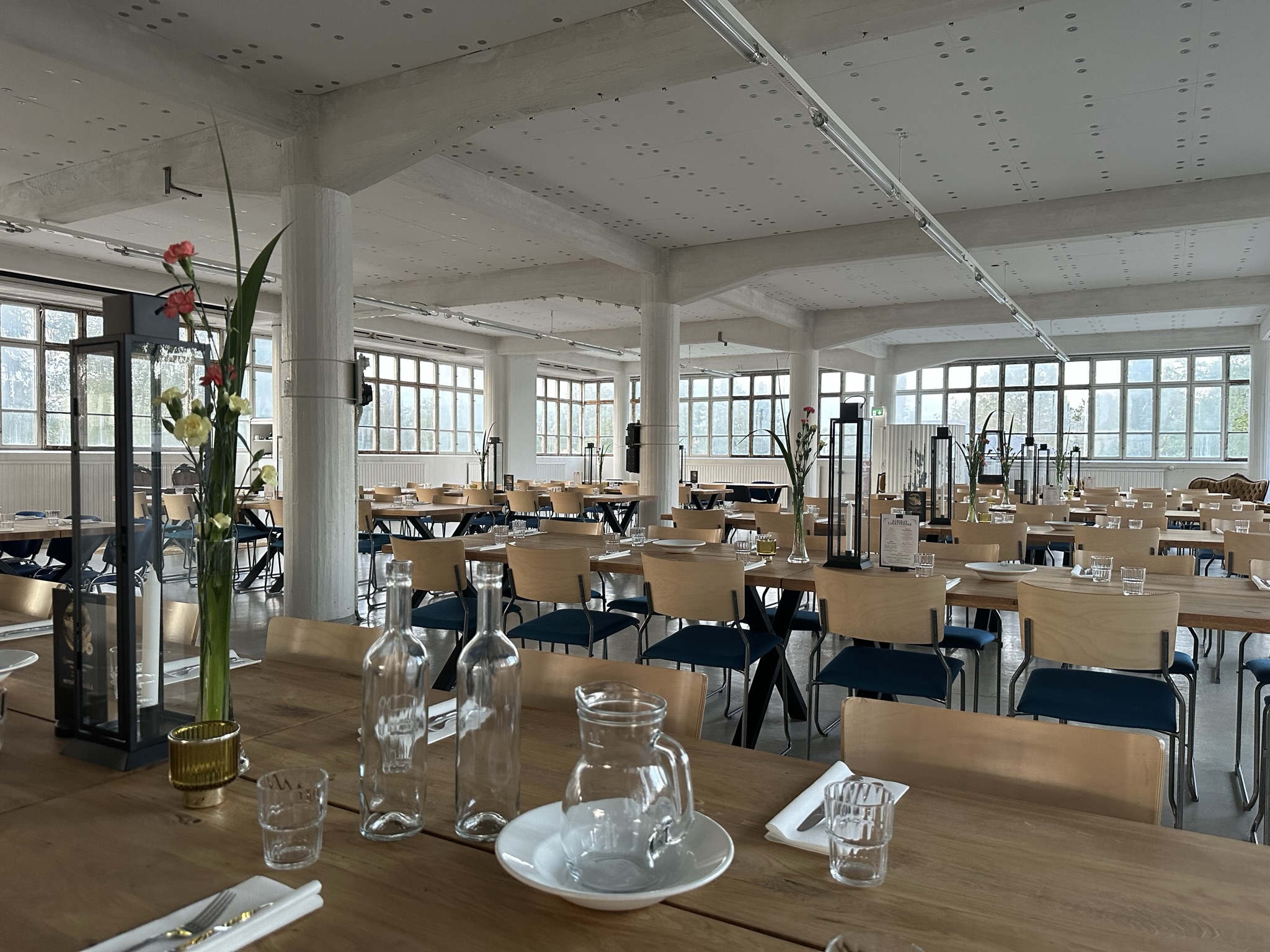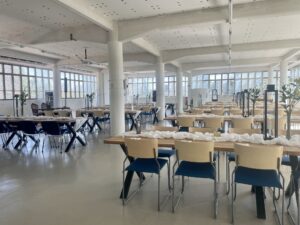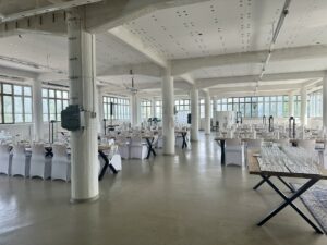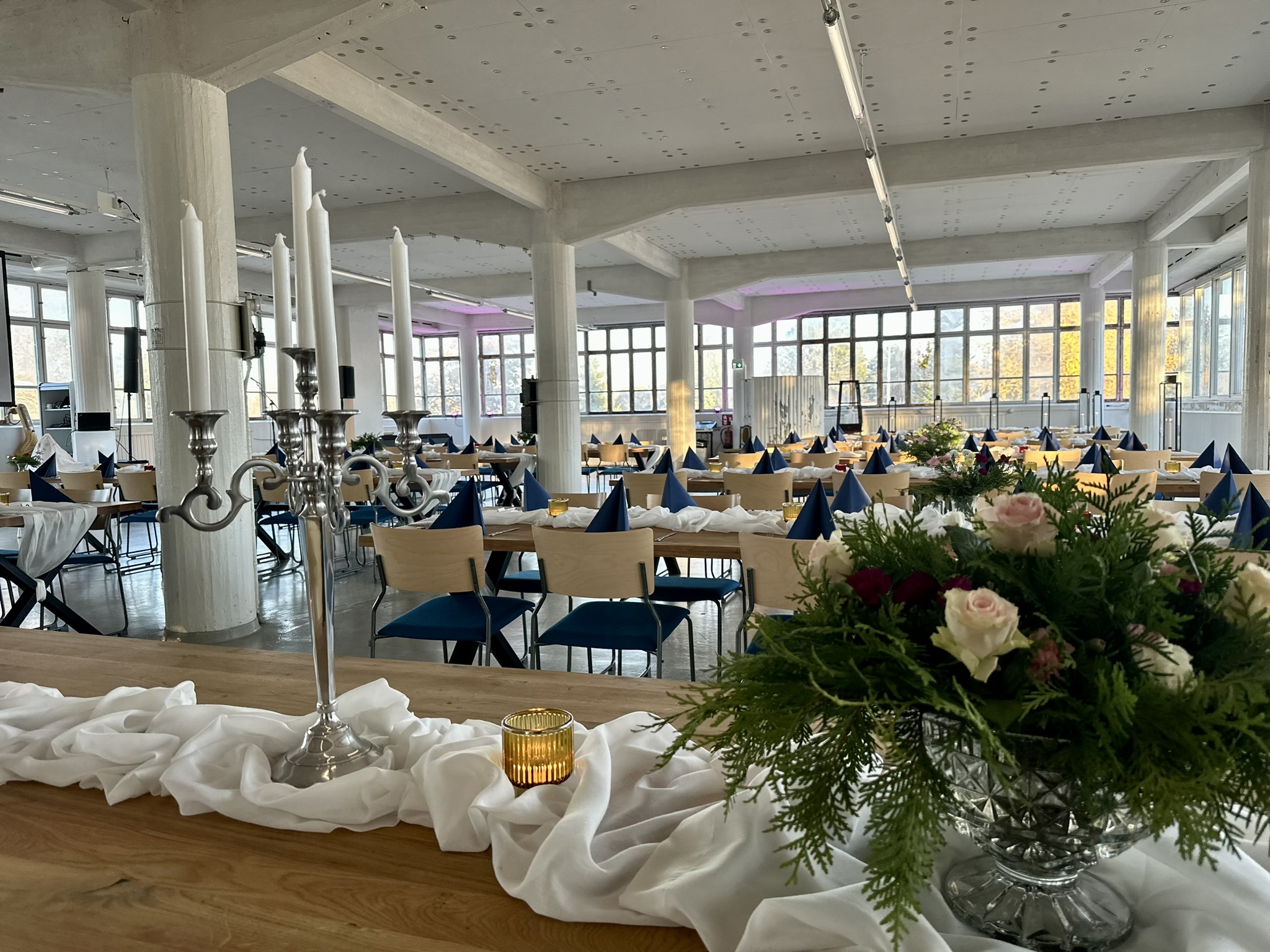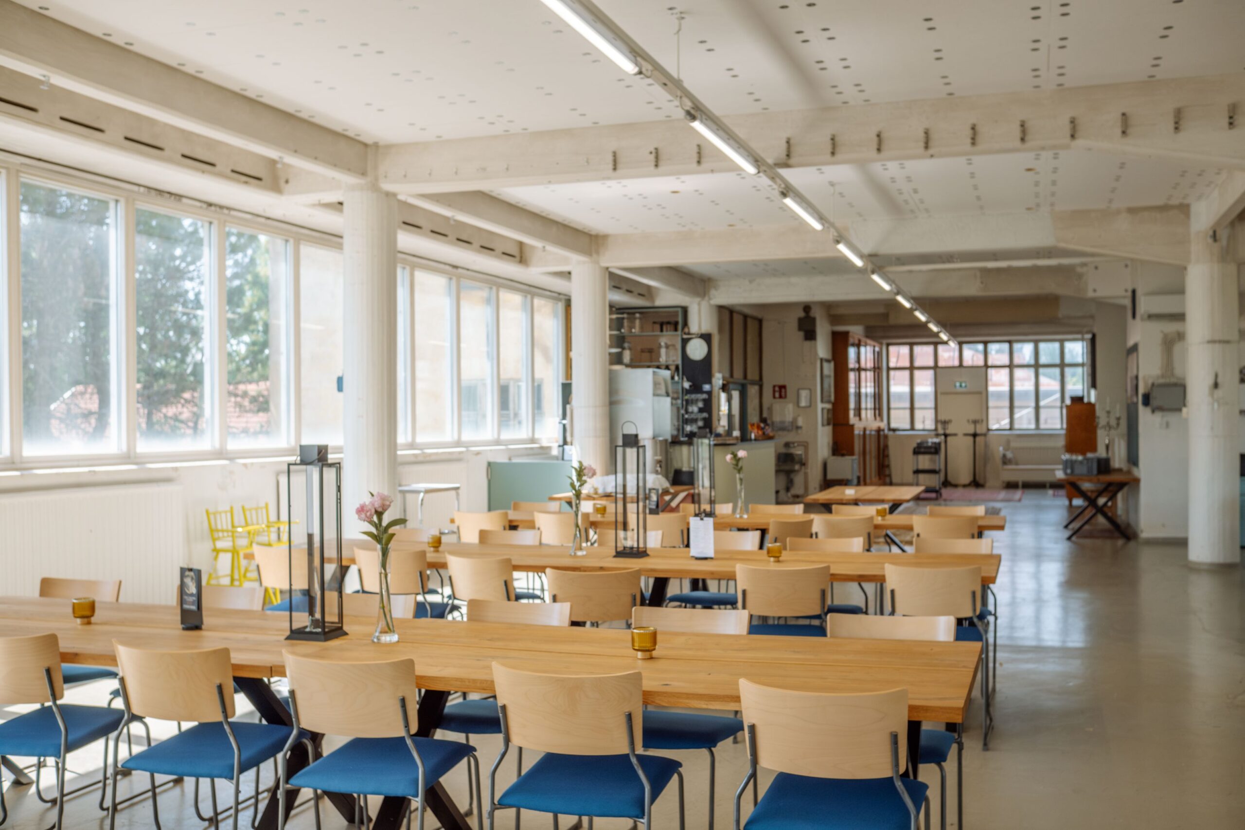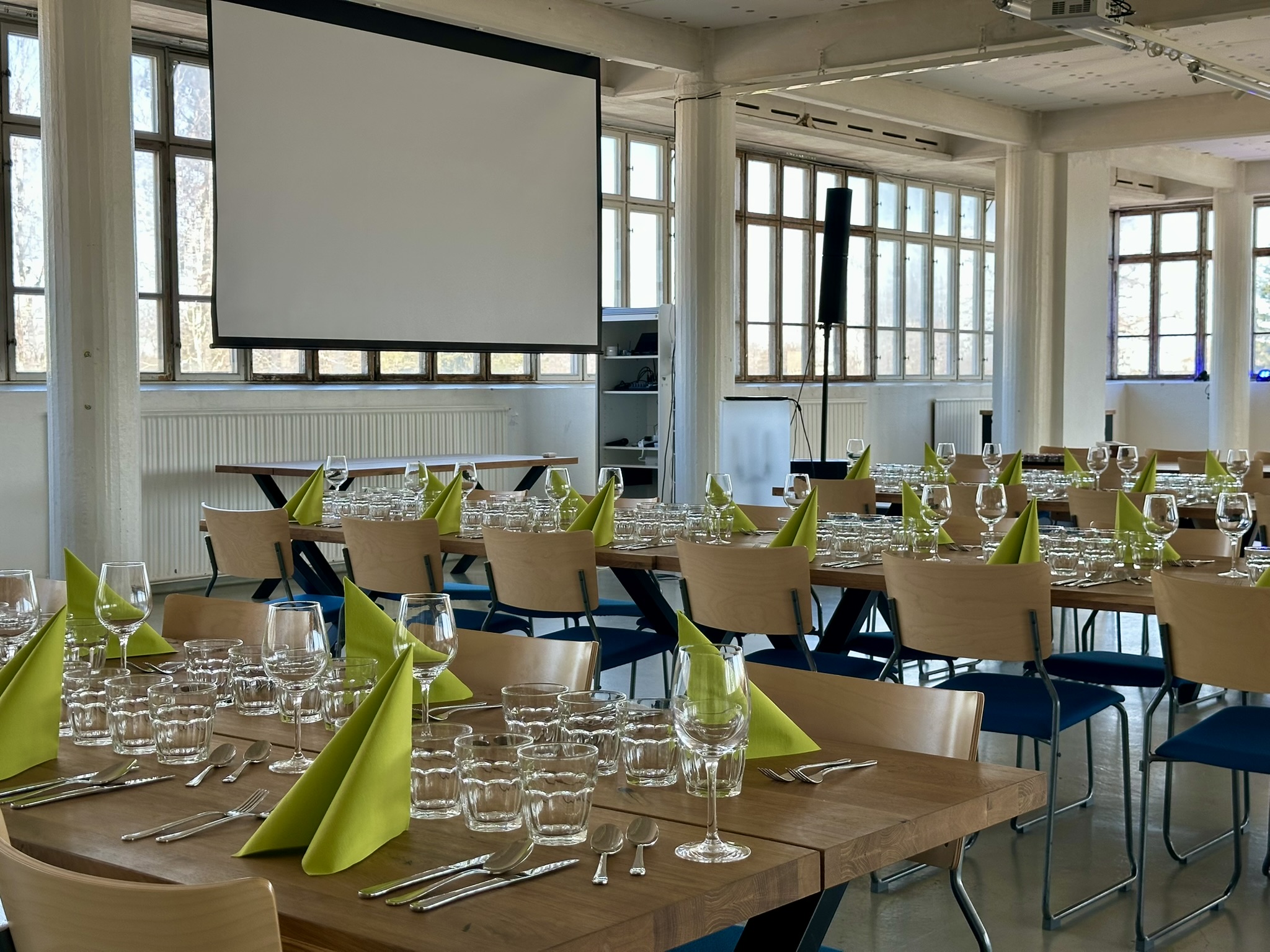 Salissa voi juhlia kerralla 180 henkeä, mutta mikään ei estä järjestämästä henkilömäärältään isojakin juhlia niin että juhlijat saapuvat taloon 2-3 erässä. Toisaalta valoa ja avaruutta tuovan ikkunarivistön ansiosta miljöössä viihtyy hyvin pienetkin, esim. 20 hengen seurueet. Yhtenäisen tilan (ei väliseiniä) ansiosta suurikin juhlaseurue on samassa tilassa. Tässä autenttisessa tehdasmiljöössä järjestät niin kokoukset, häät, muistotilaisuudet, pikkujoulut, syntymäpäivät tai mitkä vaan pienet taikka suuret tilaisuudet.