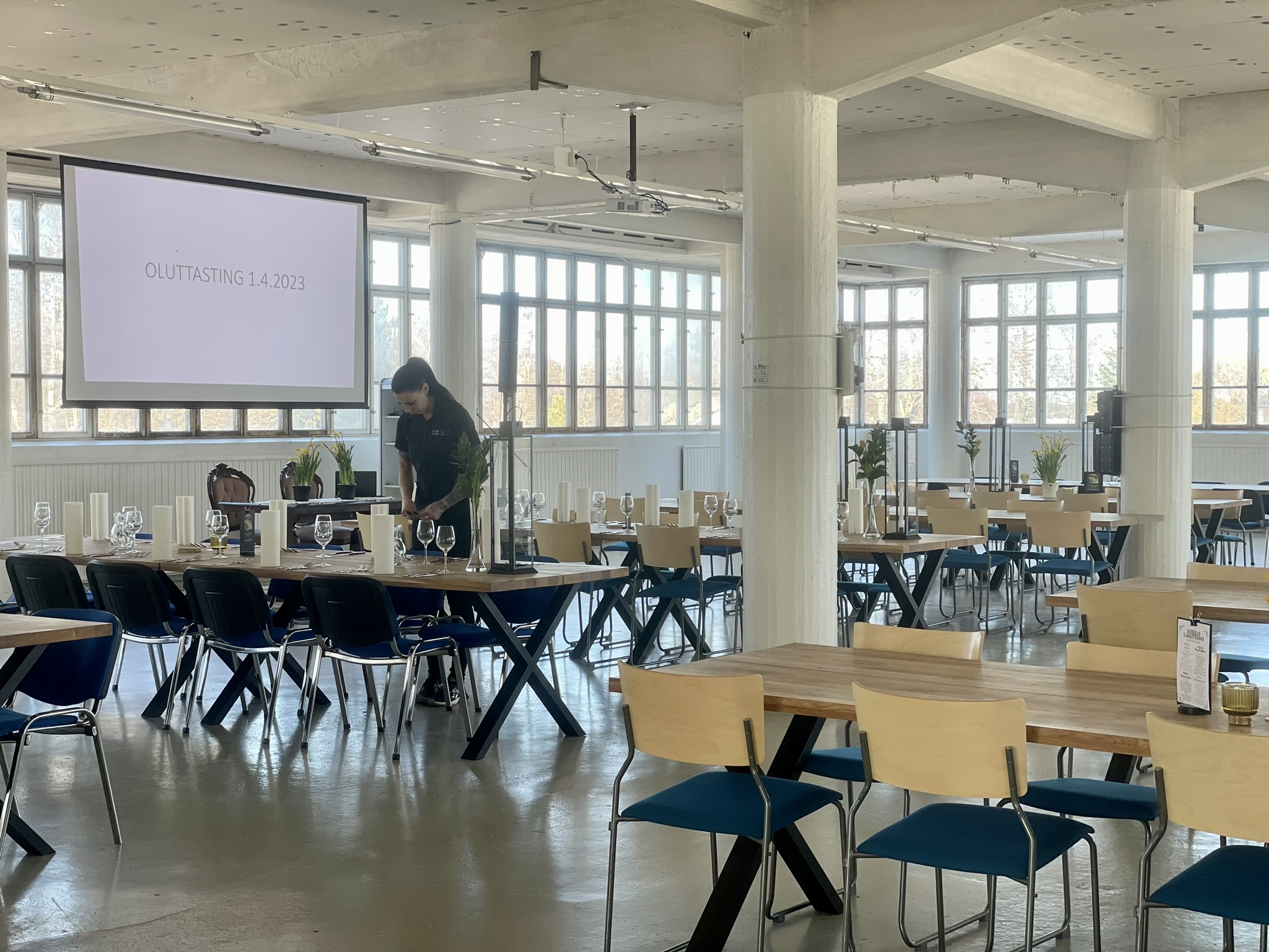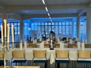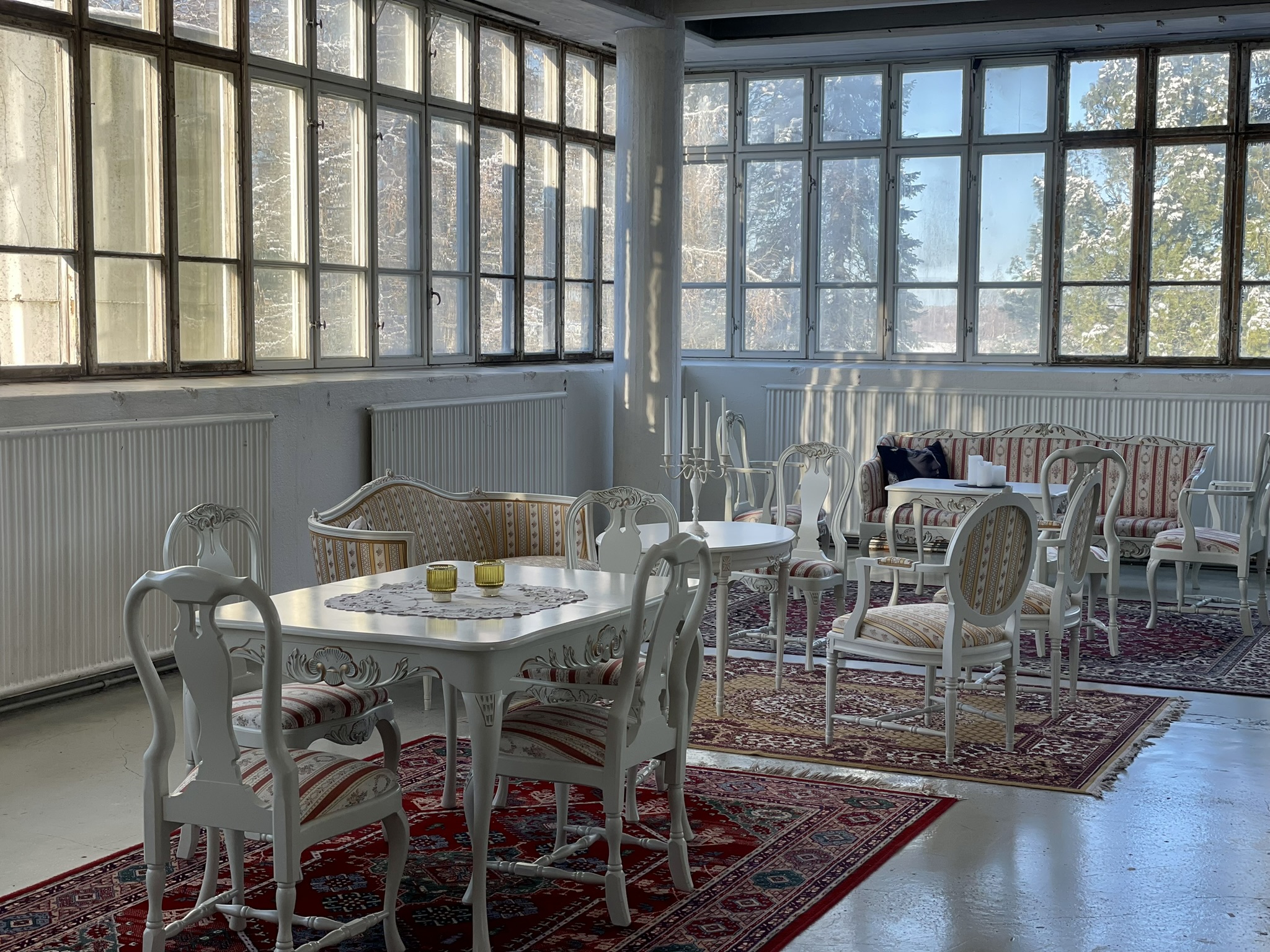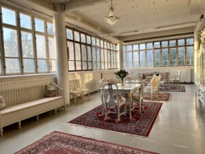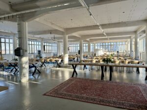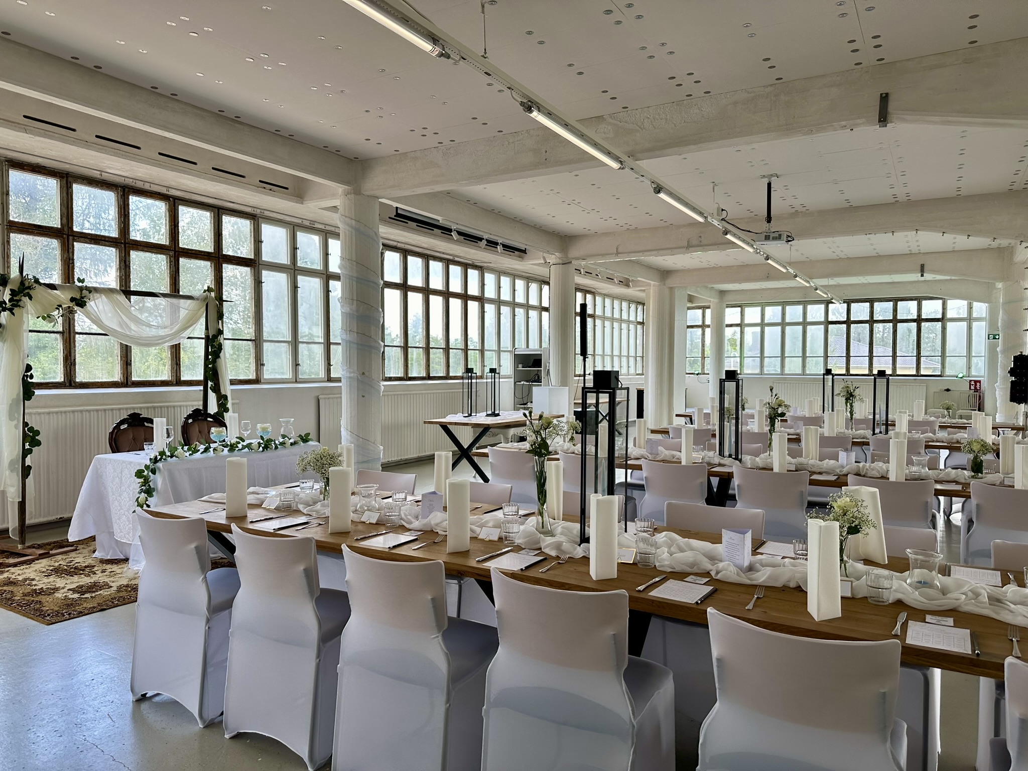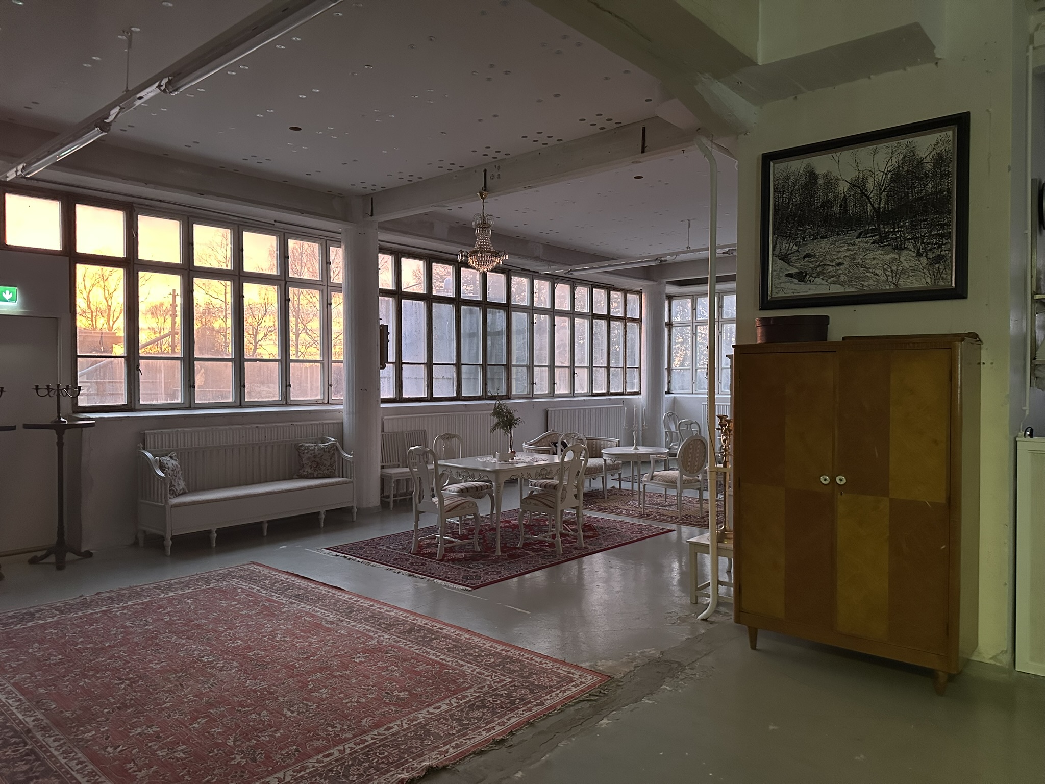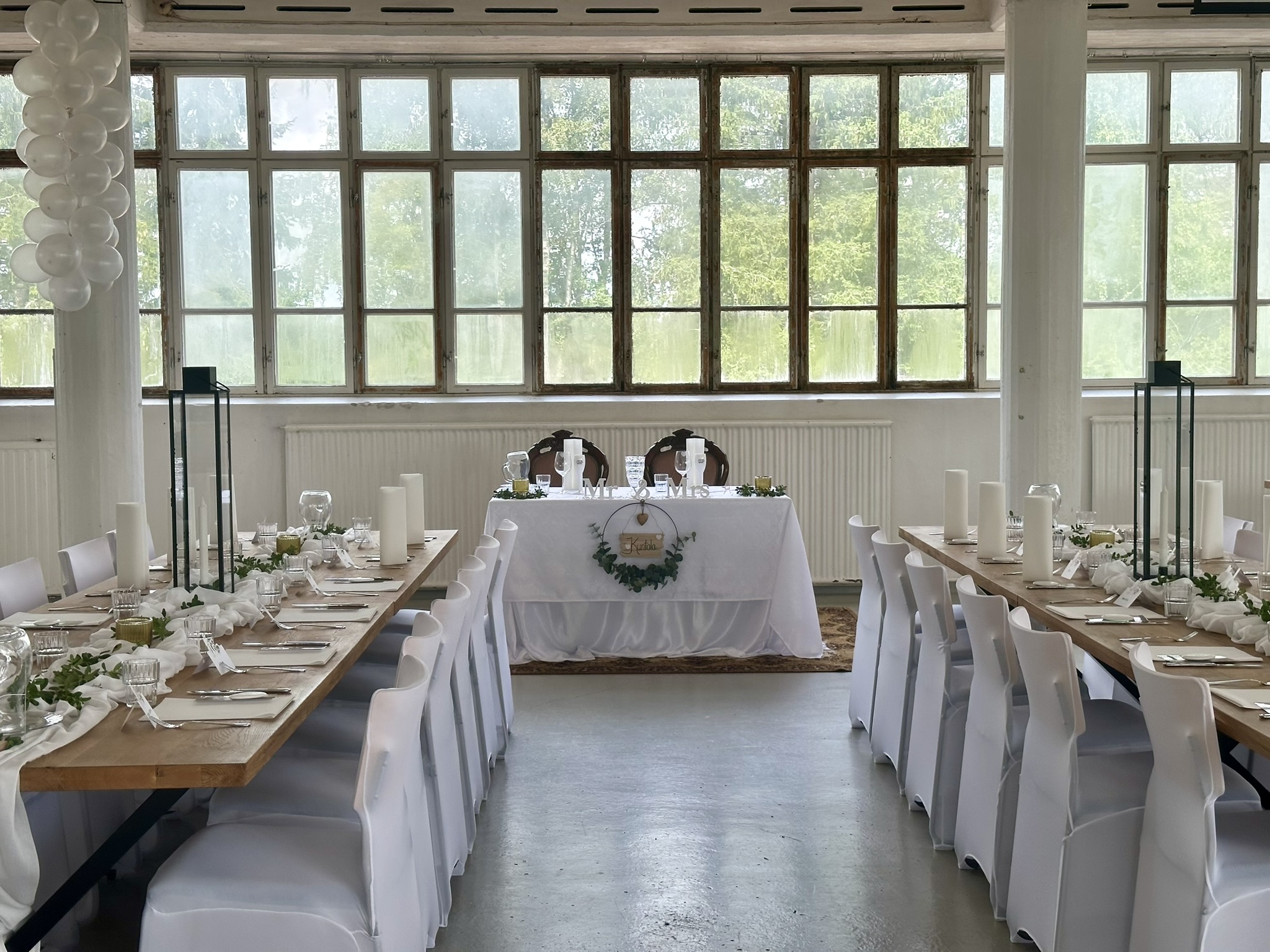 Salissa voi juhlia kerralla 180 henkeä, mutta mikään ei estä järjestämästä henkilömäärältään isojakin juhlia niin että juhlijat saapuvat taloon 2-3 erässä. Toisaalta valoa ja avaruutta tuovan ikkunarivistön ansiosta miljöössä viihtyy hyvin pienetkin, esim. 20 hengen seurueet. Yhtenäisen tilan (ei väliseiniä) ansiosta suurikin juhlaseurue on samassa tilassa. Tässä autenttisessa tehdasmiljöössä järjestät niin kokoukset, häät, muistotilaisuudet, pikkujoulut, syntymäpäivät tai mitkä vaan pienet taikka suuret tilaisuudet.