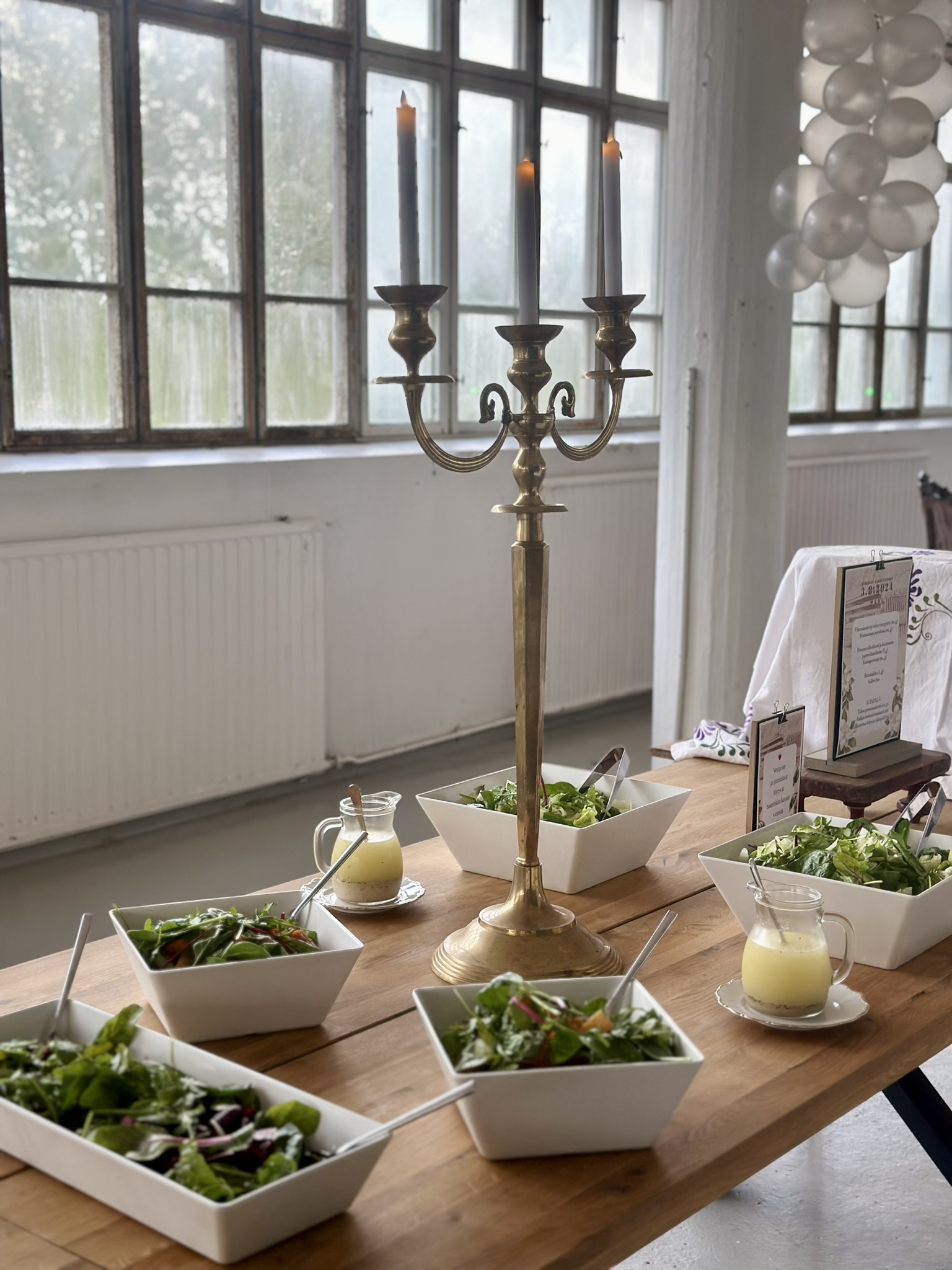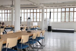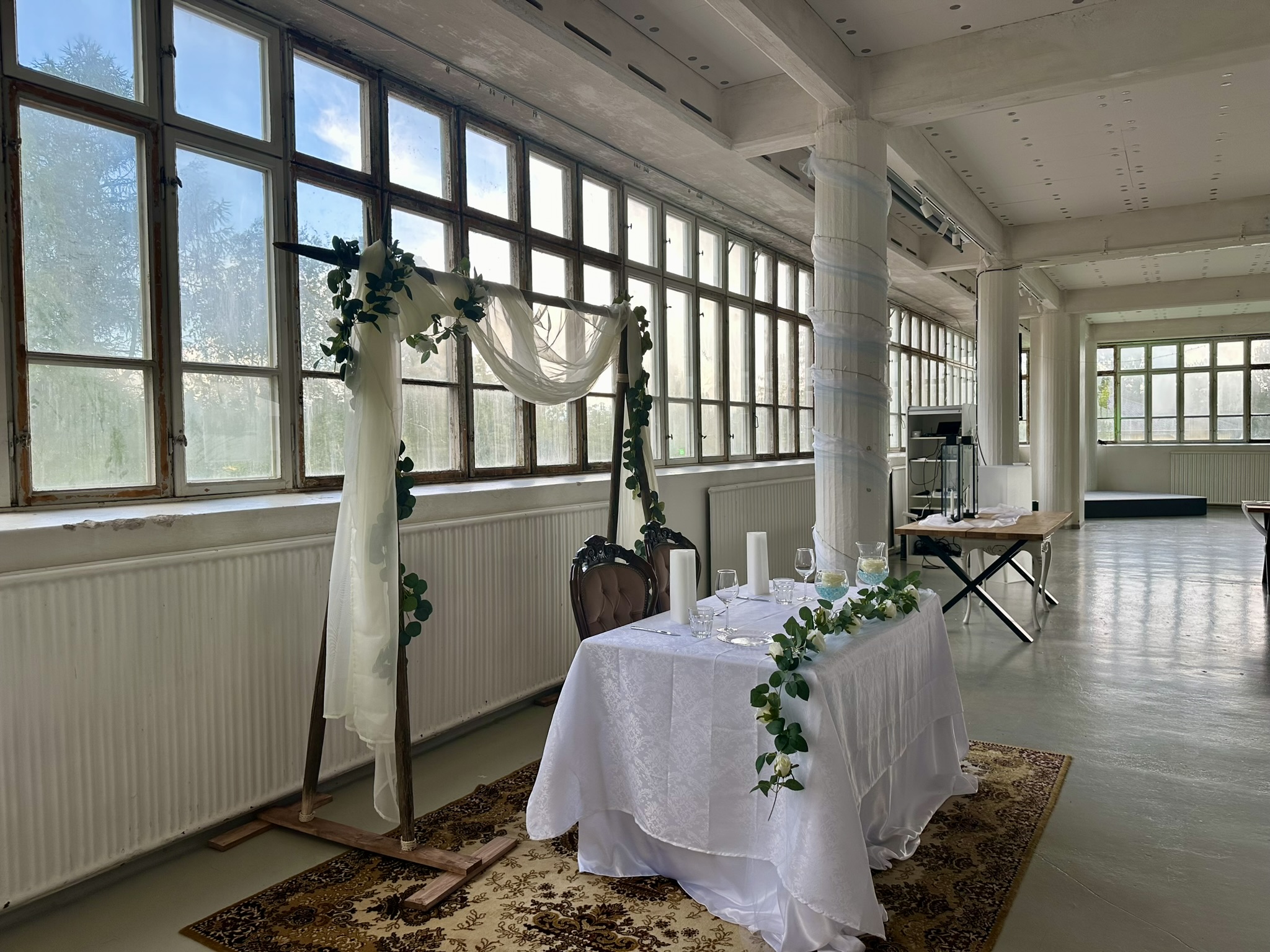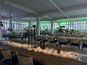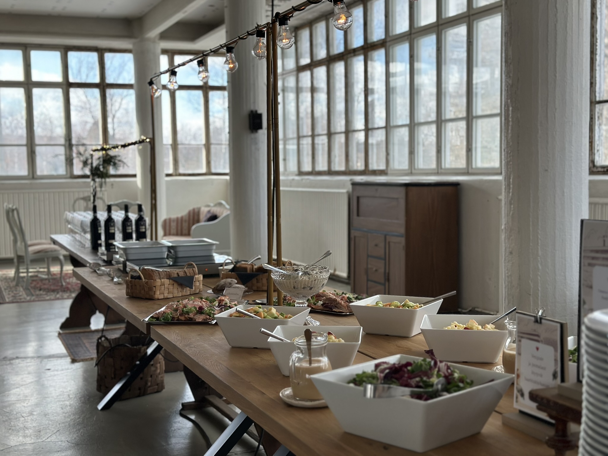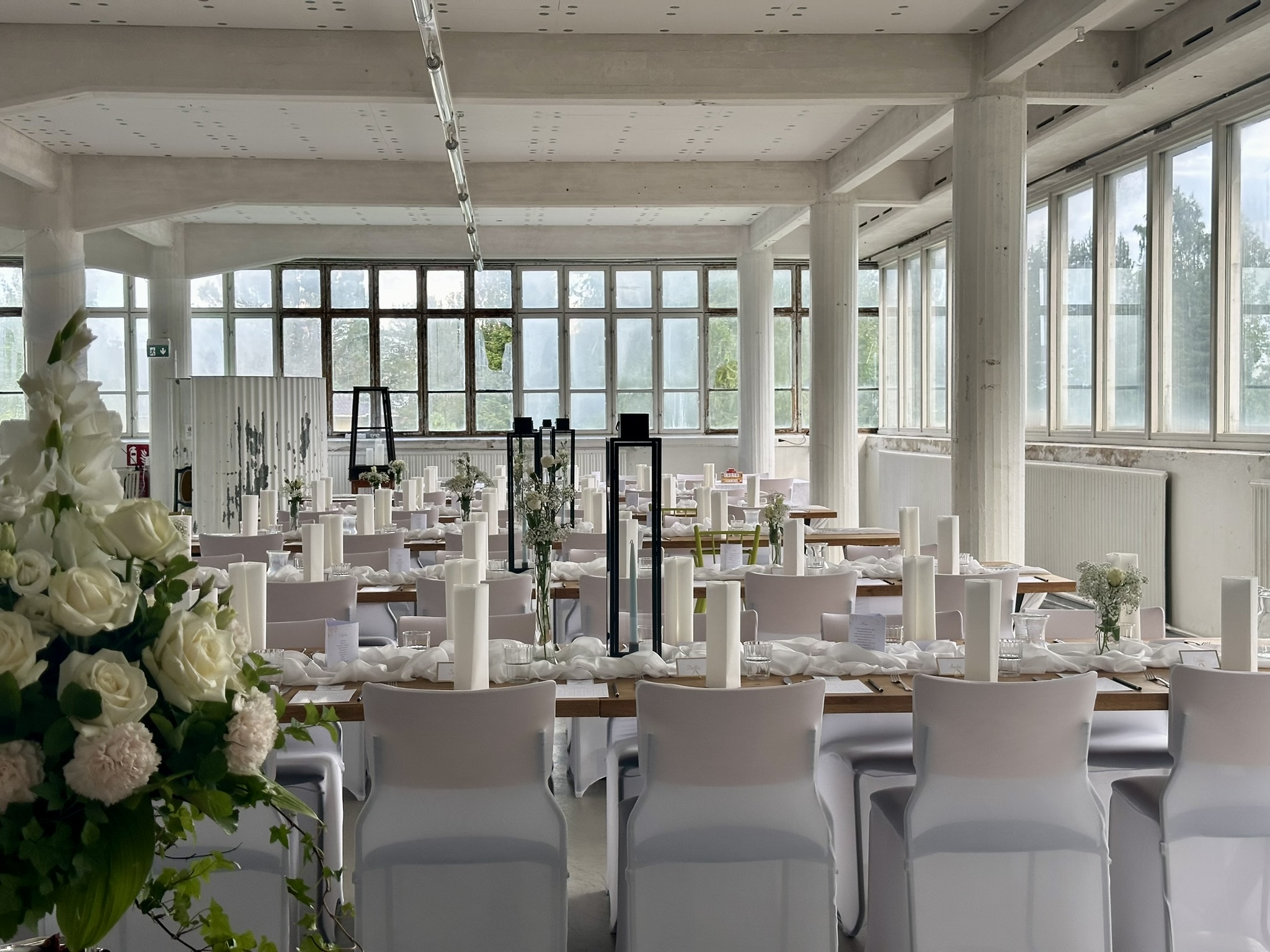 Salissa voi juhlia kerralla 180 henkeä, mutta mikään ei estä järjestämästä henkilömäärältään isojakin juhlia niin että juhlijat saapuvat taloon 2-3 erässä. Toisaalta valoa ja avaruutta tuovan ikkunarivistön ansiosta miljöössä viihtyy hyvin pienetkin, esim. 20 hengen seurueet. Yhtenäisen tilan (ei väliseiniä) ansiosta suurikin juhlaseurue on samassa tilassa. Tässä autenttisessa tehdasmiljöössä järjestät niin kokoukset, häät, muistotilaisuudet, pikkujoulut, syntymäpäivät tai mitkä vaan pienet taikka suuret tilaisuudet.