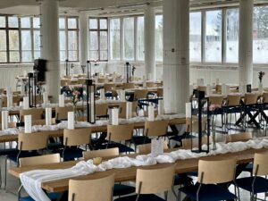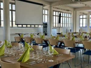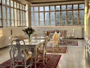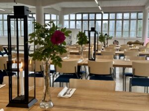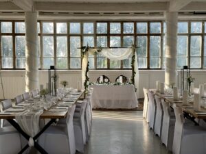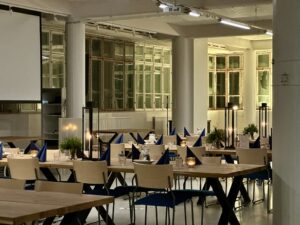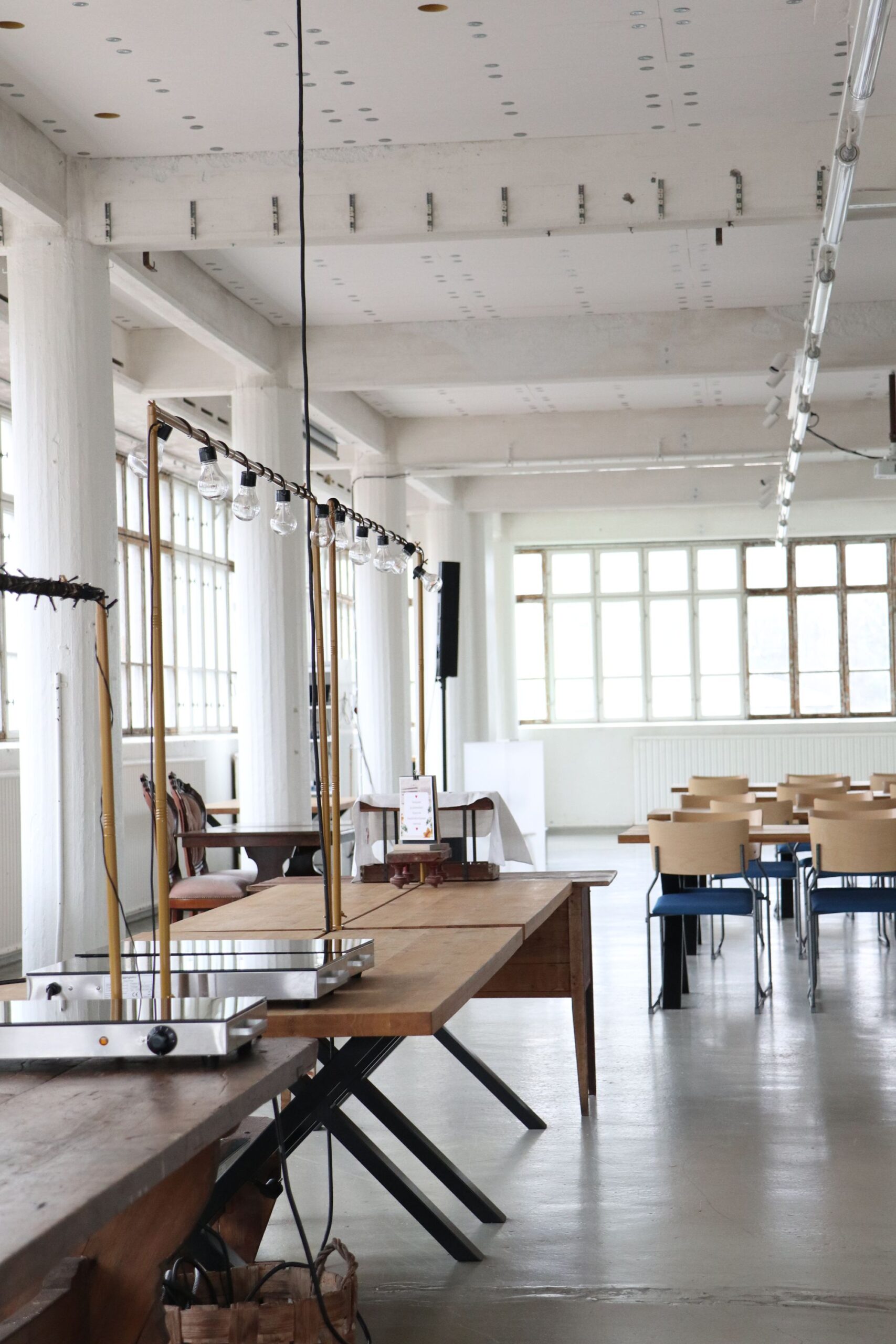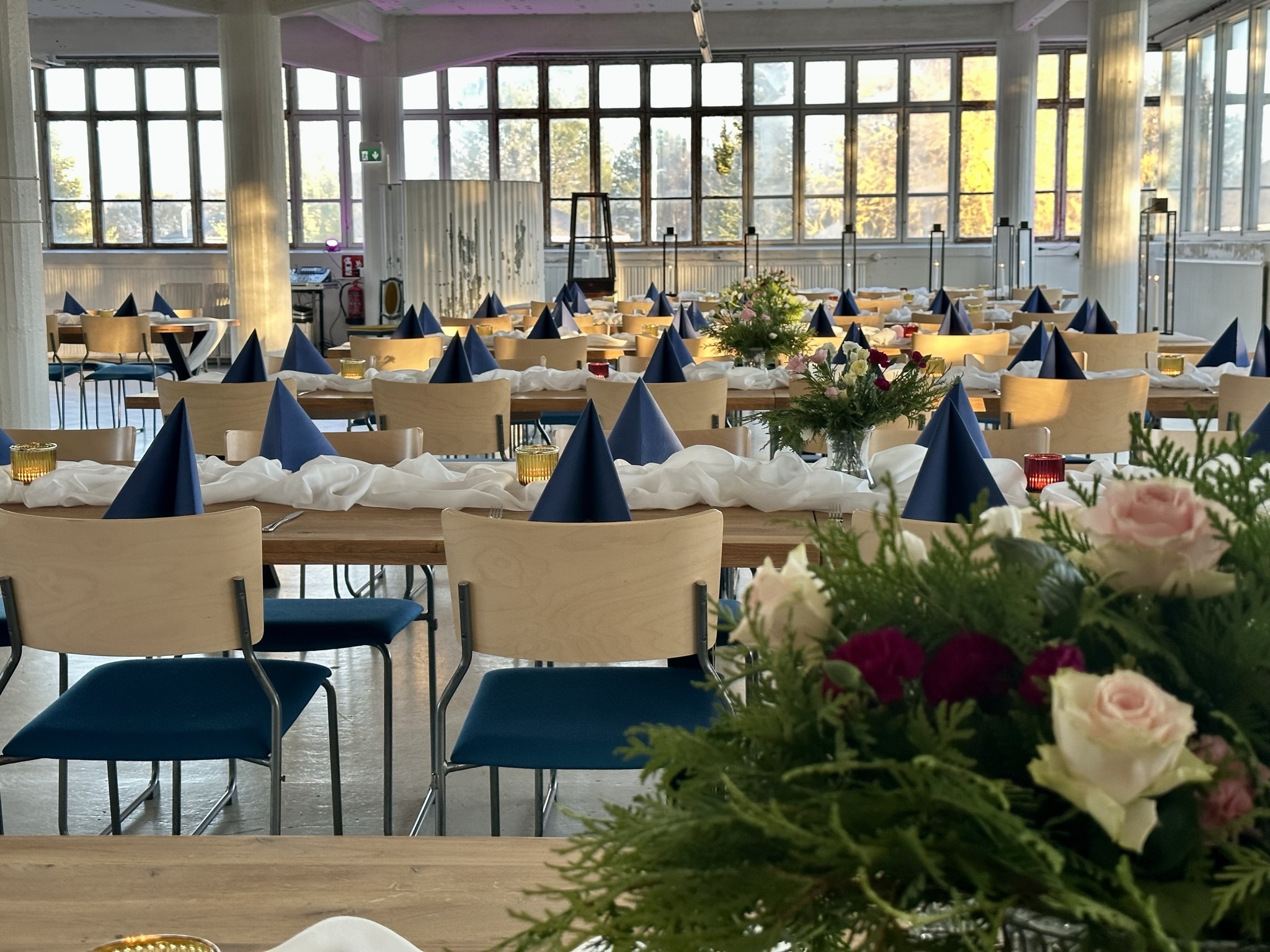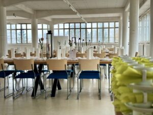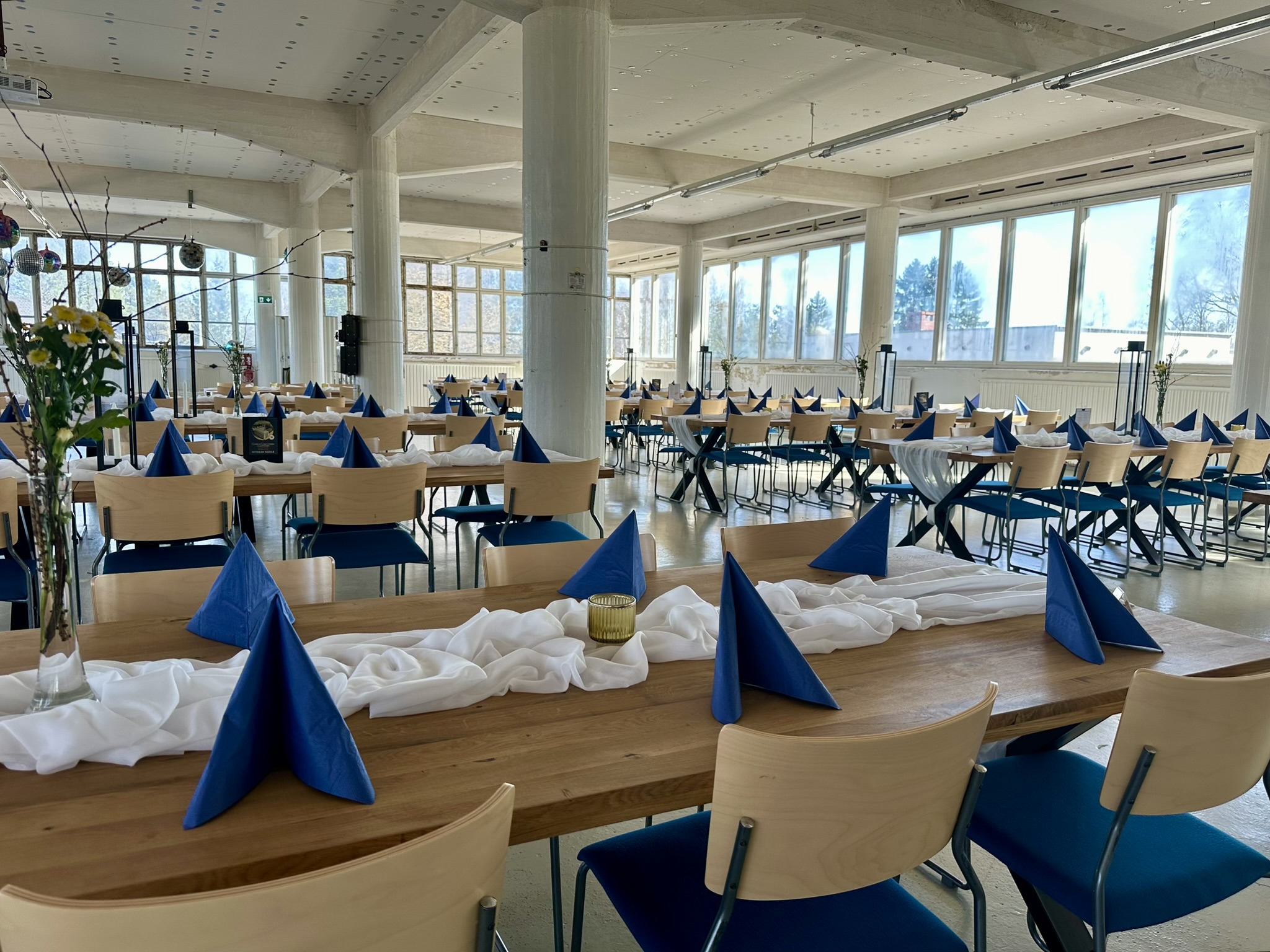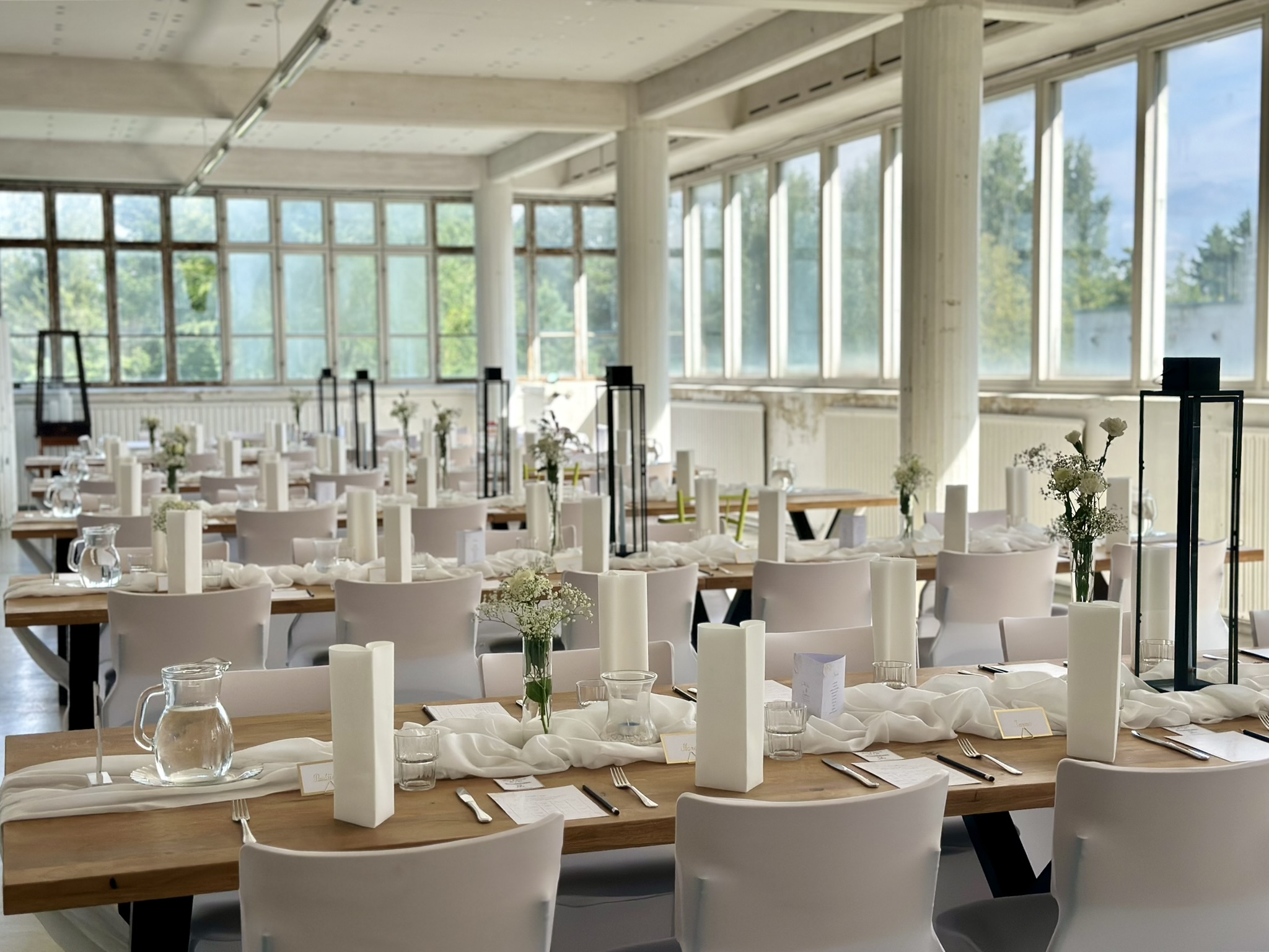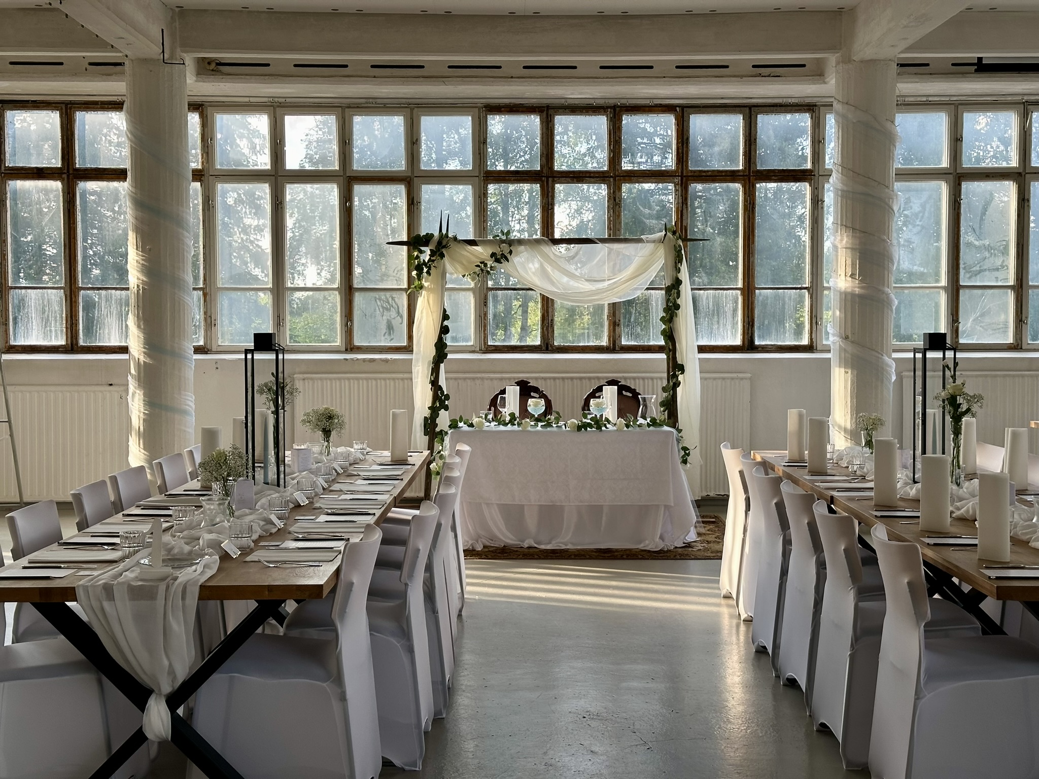Salissa voi juhlia kerralla 180 henkeä, mutta mikään ei estä järjestämästä henkilömäärältään isojakin juhlia niin että juhlijat saapuvat taloon 2-3 erässä. Toisaalta valoa ja avaruutta tuovan ikkunarivistön ansiosta miljöössä viihtyy hyvin pienetkin, esim. 20 hengen seurueet. Yhtenäisen tilan (ei väliseiniä) ansiosta suurikin juhlaseurue on samassa tilassa. Tässä autenttisessa tehdasmiljöössä järjestät niin kokoukset, häät, muistotilaisuudet, pikkujoulut, syntymäpäivät tai mitkä vaan pienet taikka suuret tilaisuudet.