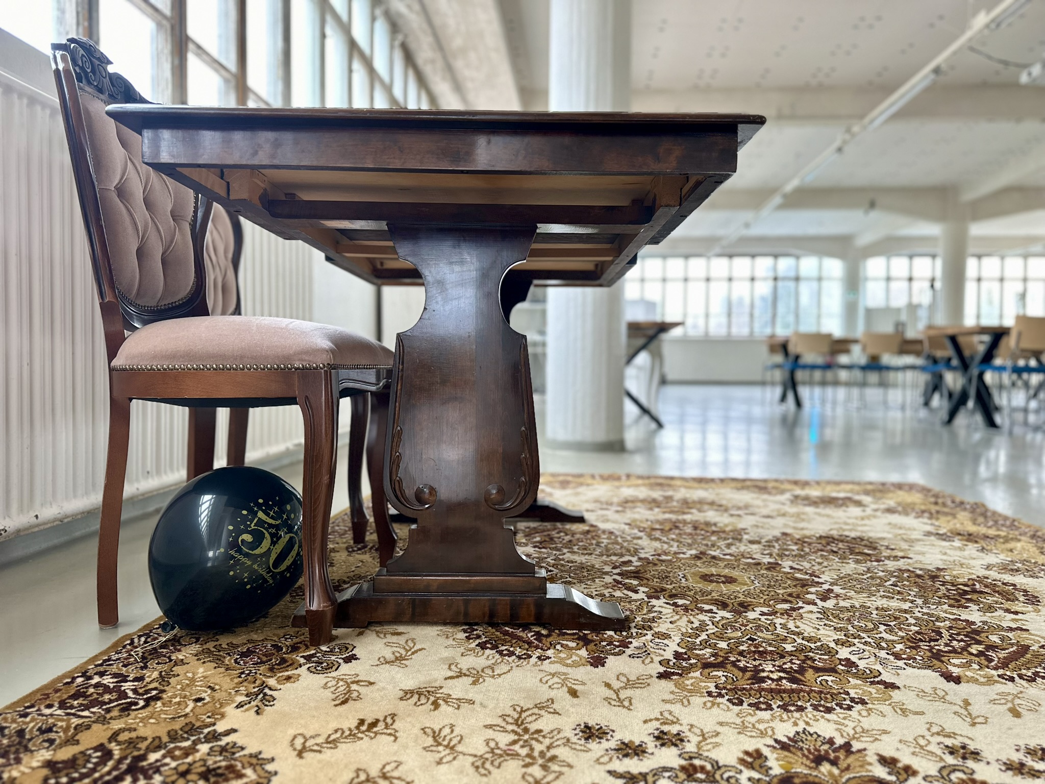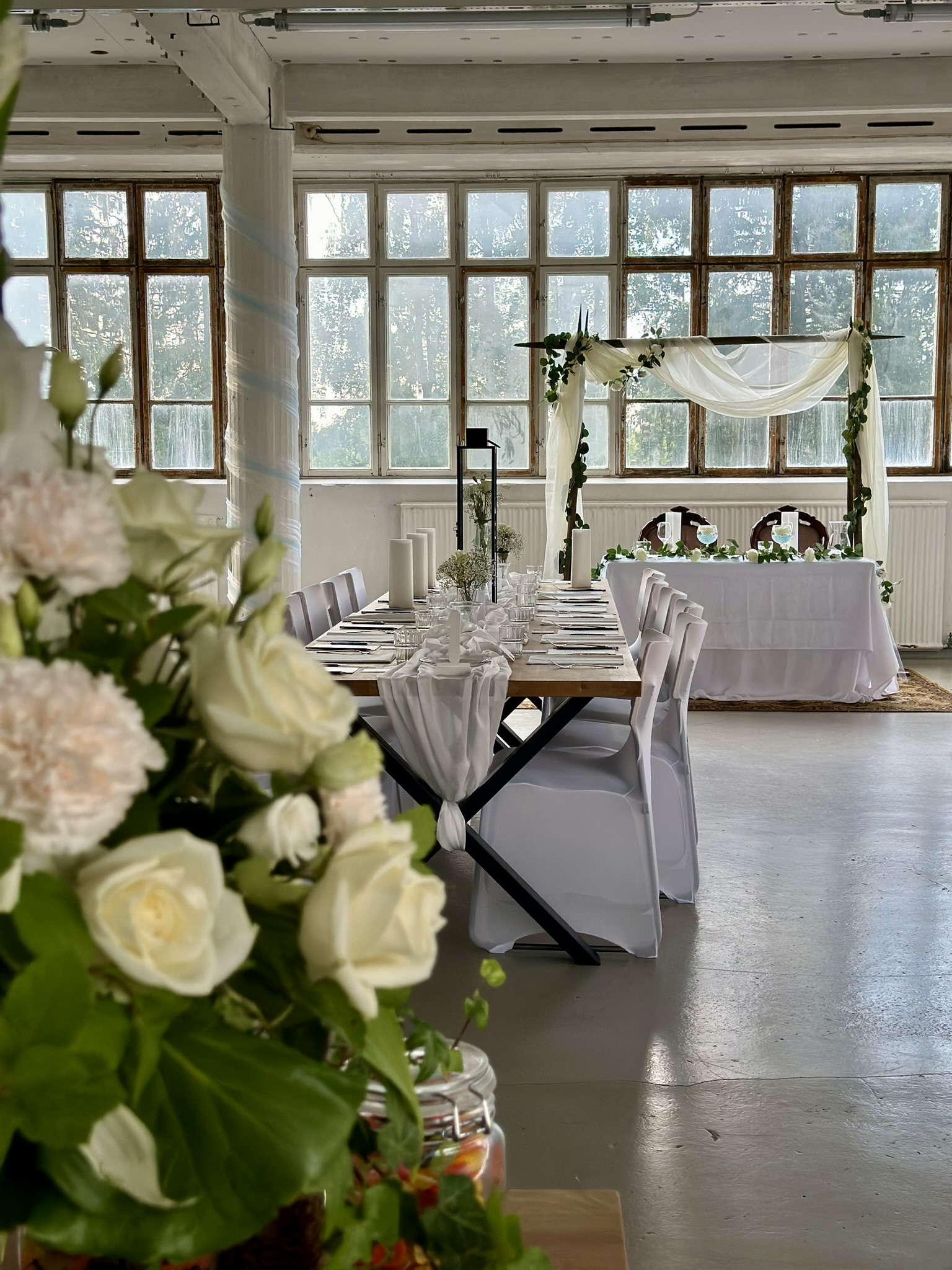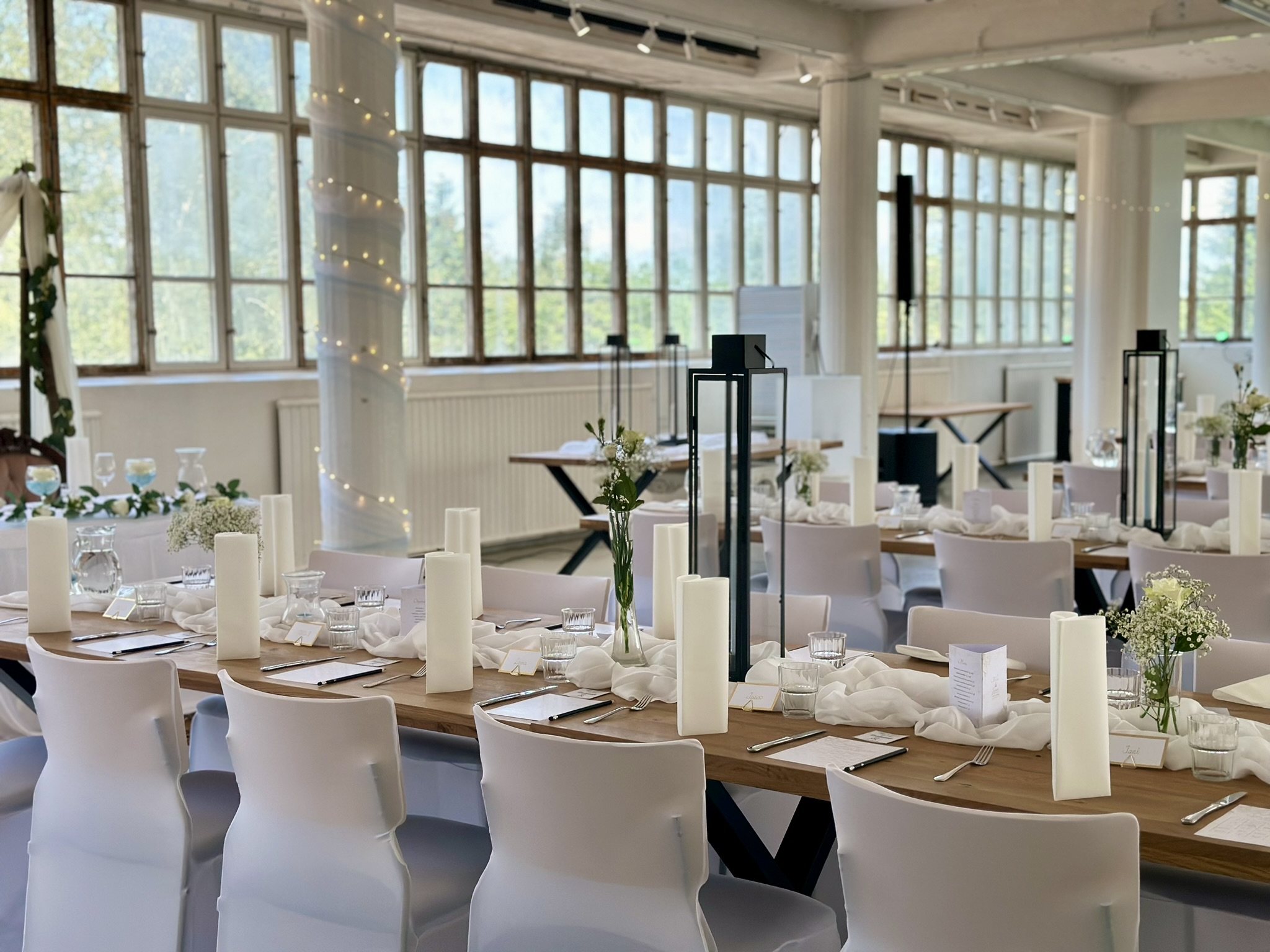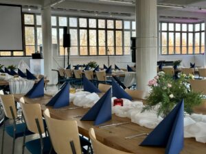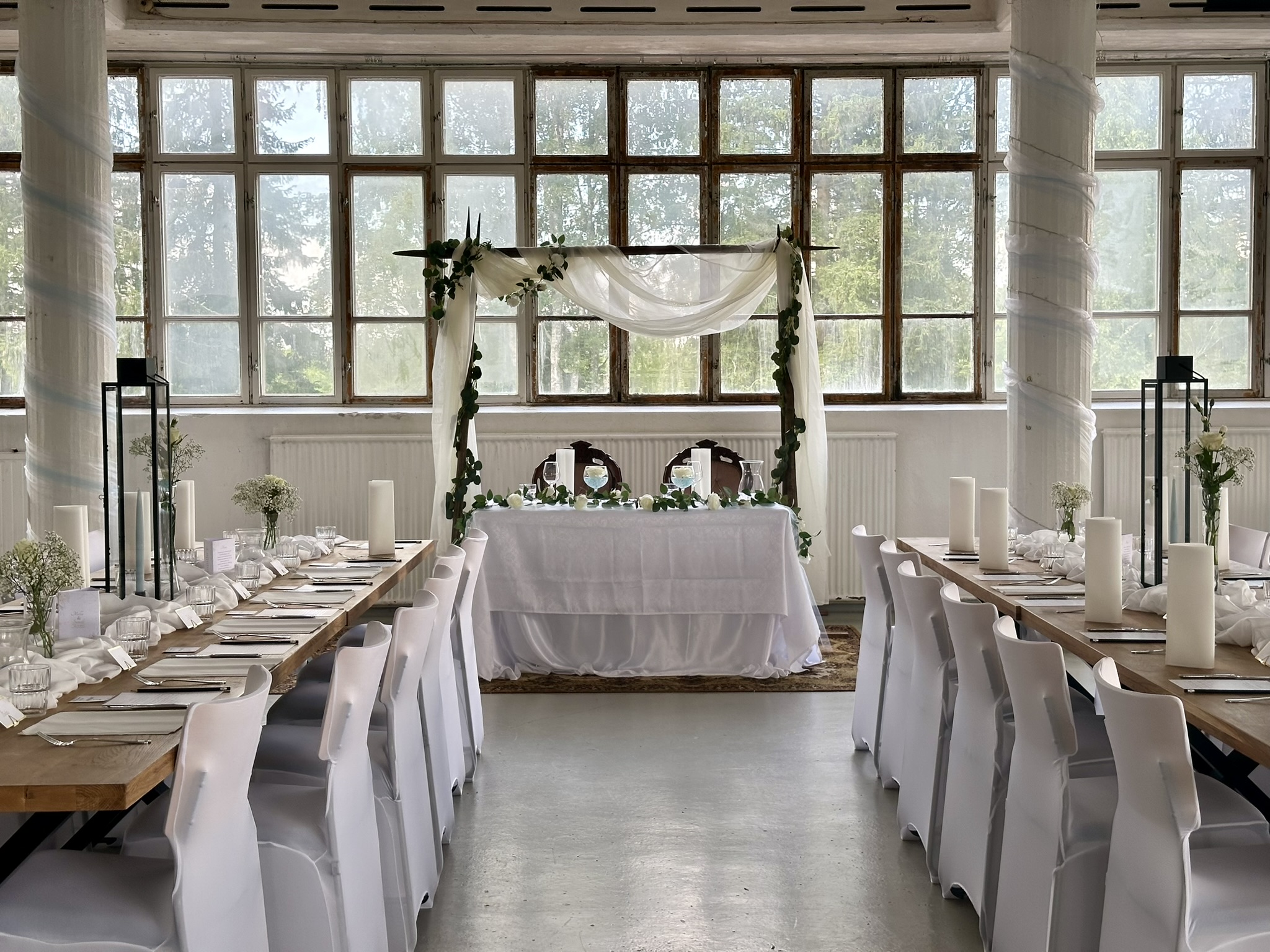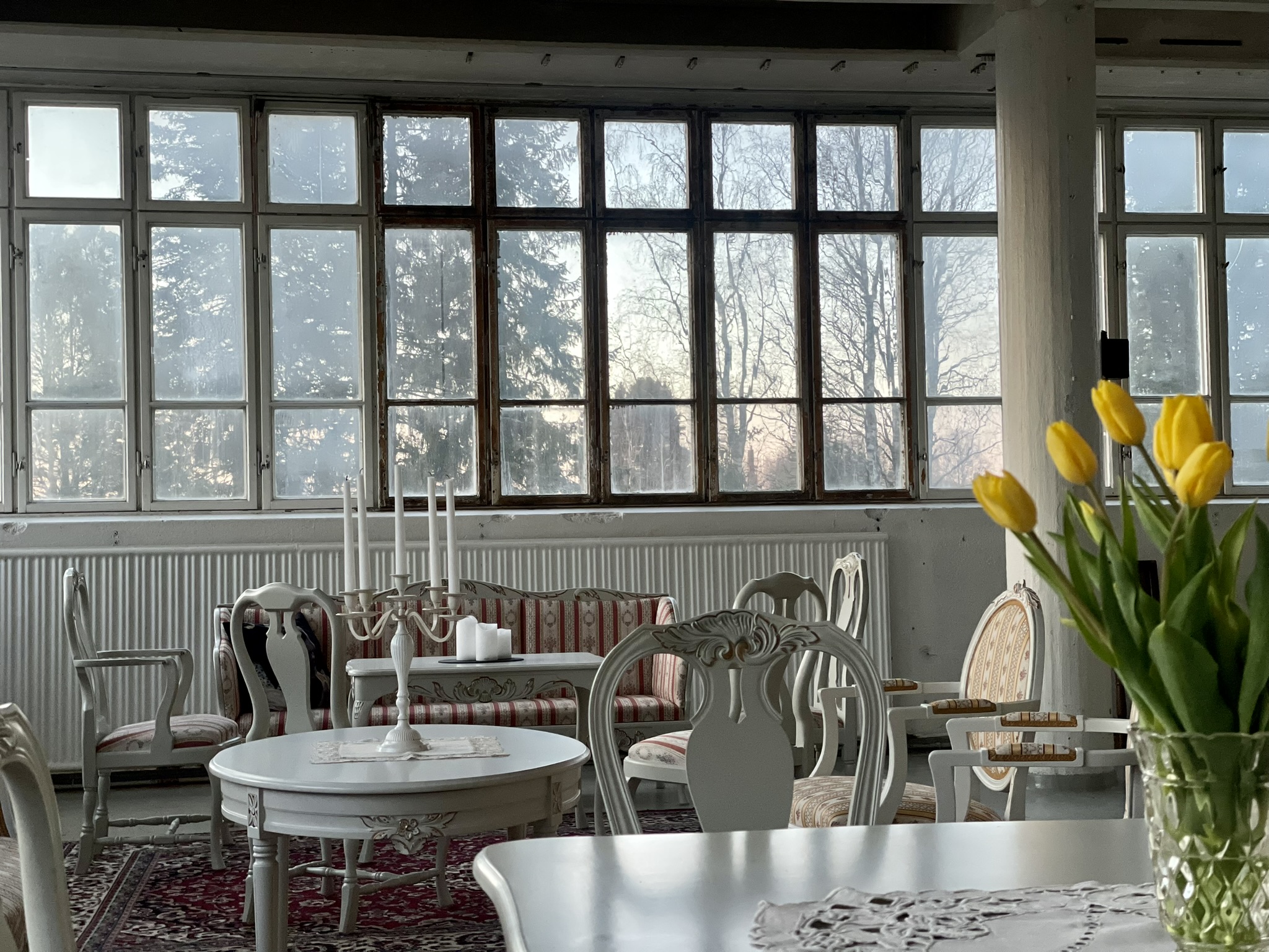 Salissa voi juhlia kerralla 180 henkeä, mutta mikään ei estä järjestämästä henkilömäärältään isojakin juhlia niin että juhlijat saapuvat taloon 2-3 erässä. Toisaalta valoa ja avaruutta tuovan ikkunarivistön ansiosta miljöössä viihtyy hyvin pienetkin, esim. 20 hengen seurueet. Yhtenäisen tilan (ei väliseiniä) ansiosta suurikin juhlaseurue on samassa tilassa. Tässä autenttisessa tehdasmiljöössä järjestät niin kokoukset, häät, muistotilaisuudet, pikkujoulut, syntymäpäivät tai mitkä vaan pienet taikka suuret tilaisuudet.