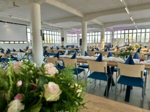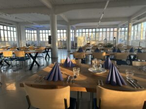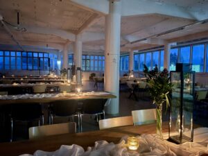 Arkkitehti Aarne Ervin suunnitteleman, vuonna 1938 valmistuneen tehdasrakennuksen ylimmän, eli kolmannen kerroksen yli 500 neliön entisestä ompelusalista on remontoitu vanhaa kunnioittaen täysin ainutlaatuinen juhlasali. Kerroksen katkeamaton, joka ilmansuuntaan avautuva nauhaikkunarivistö tarjoaa valaistukseltaan upean miljöön, jonka näköalat vaihtuvat alati vuorokauden ja vuodenaikojen muuttuessa. Salin akustiikka on erinomainen mm. katon uusittujen akustiikkalevyjen ansiosta. Saliin asennetut ilmalämpöpumput puolestaan antavat (peruslämmön lisäksi) kovimmilla talvipakkasilla lisälämmön, mahdollistaen kuitenkin myös kesäkuumilla tarpeellisen viilennyksen. Juhlasalin yhteydessä on juhlien aikaan avoinna oleva, täysin varusteltu baari. Salissa on tilaisuuksien aikaan aina myös oma henkilökunta. Kerroksessa on omat saniteettitilat, jotka ovat vain tämän kerroksen asiakkaitten käytössä. Vaatesäilytys/naulakot löytyvät puoli kerrosta ylempää. Tilasta löytyy AV-välineet ja perus PA-laitteet. Myös esiintymiskoroke sekä suuri tanssilattia kuuluvat salin varustuksiin.