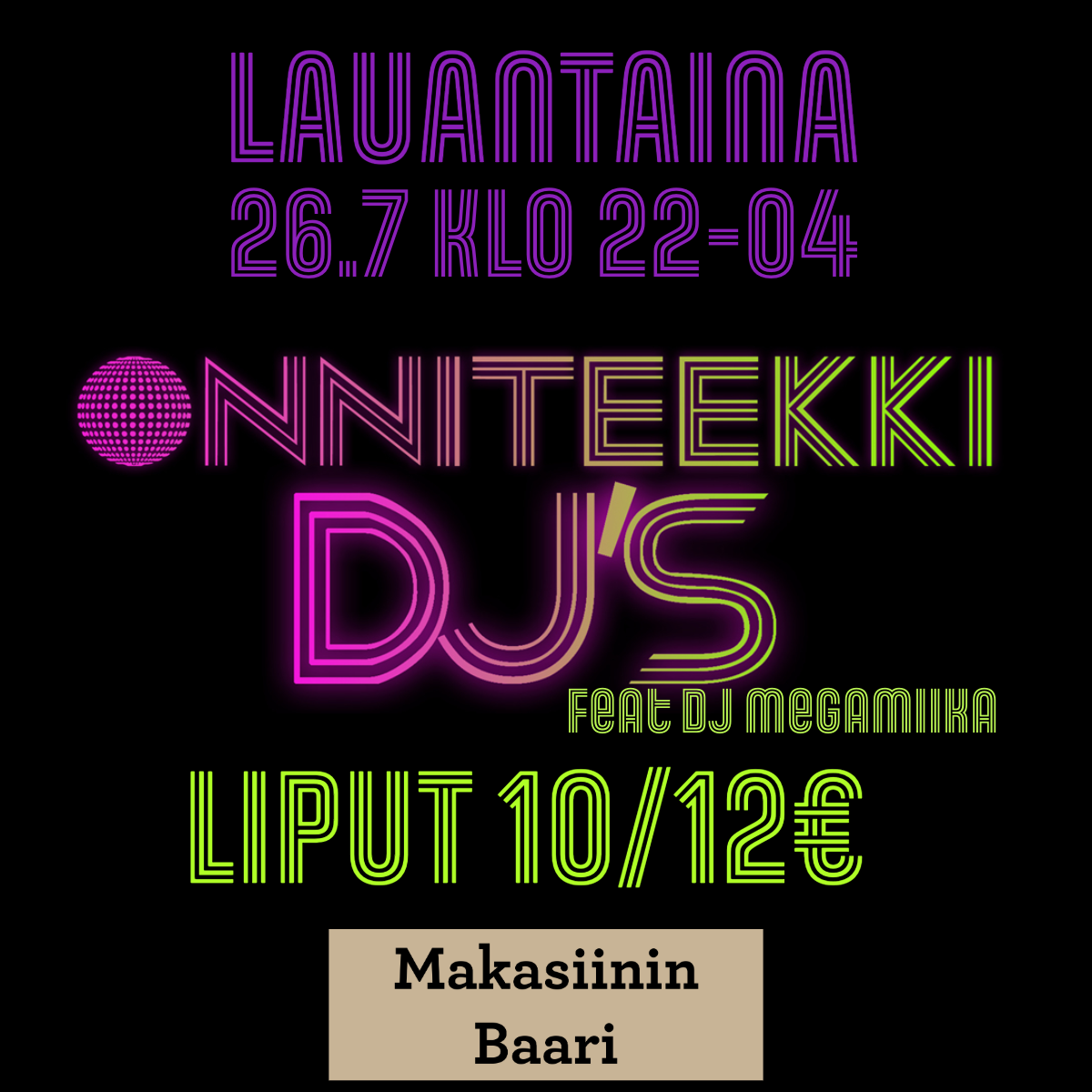 #onniteekkidjs #kurikanmakasiini #retrodisko #bileet #djtony #djalexl #djmegamiika #ysäri #kasari #nollari